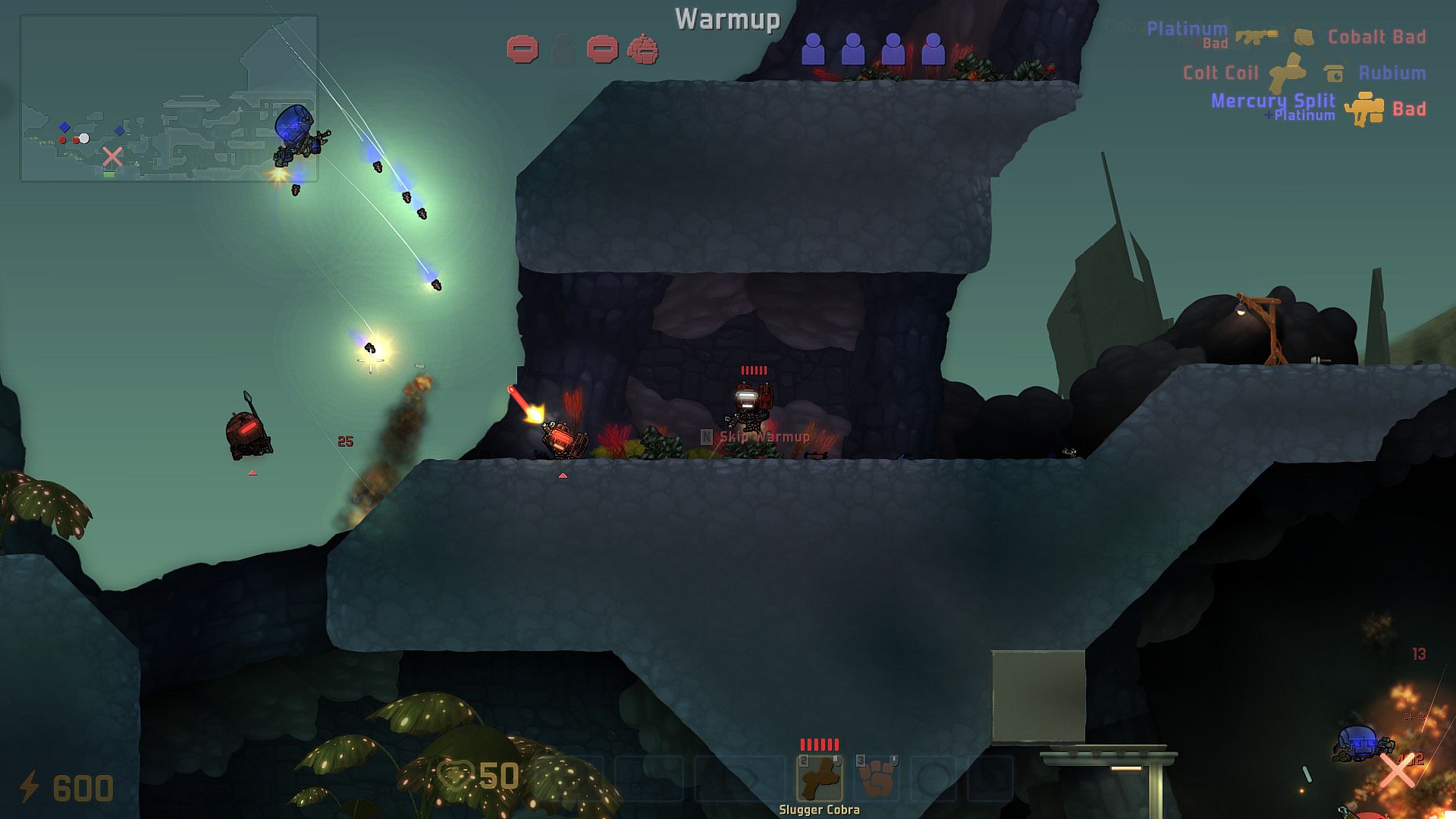 Two teams of adorable murder-bots duke it out over a number of rounds. One side attempts to plant and detonate bombs in their opponents’ base, and the other, quite reasonably, attempts to stop them.