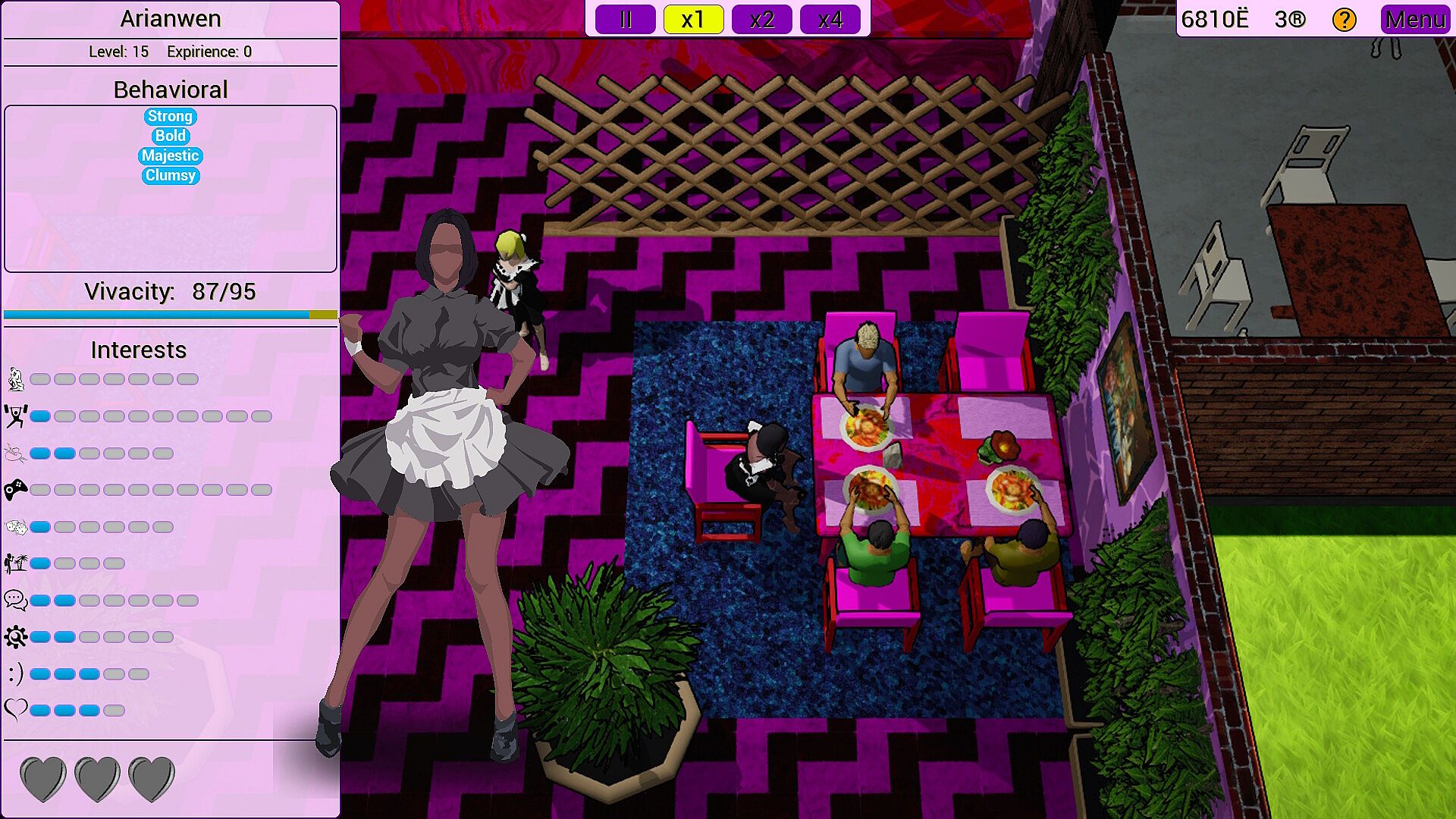 You have to hire and develop waitresses, improve your cafe and seat guests in the cafe hall. The days are depressing with their routine, but in the evenings you can go on dates with beautiful girls and develop relationships with them.