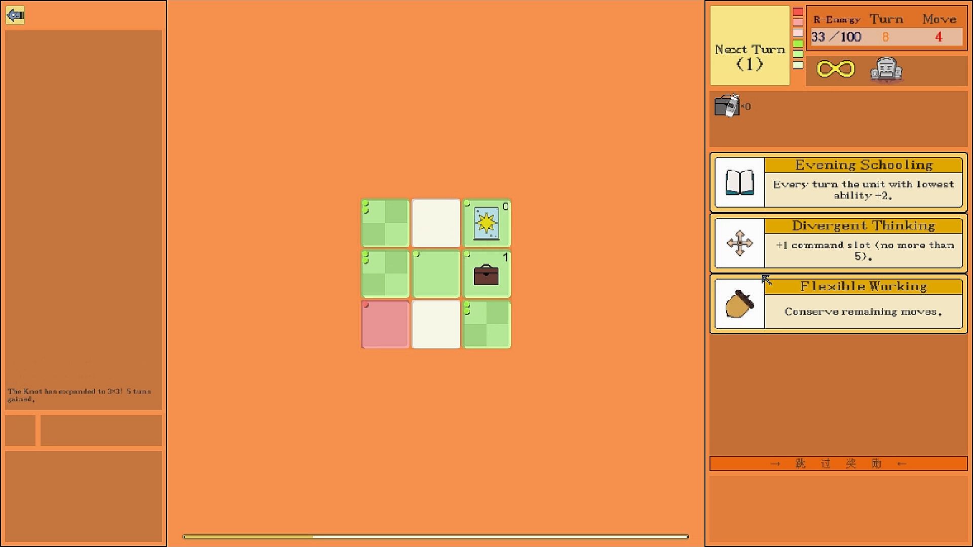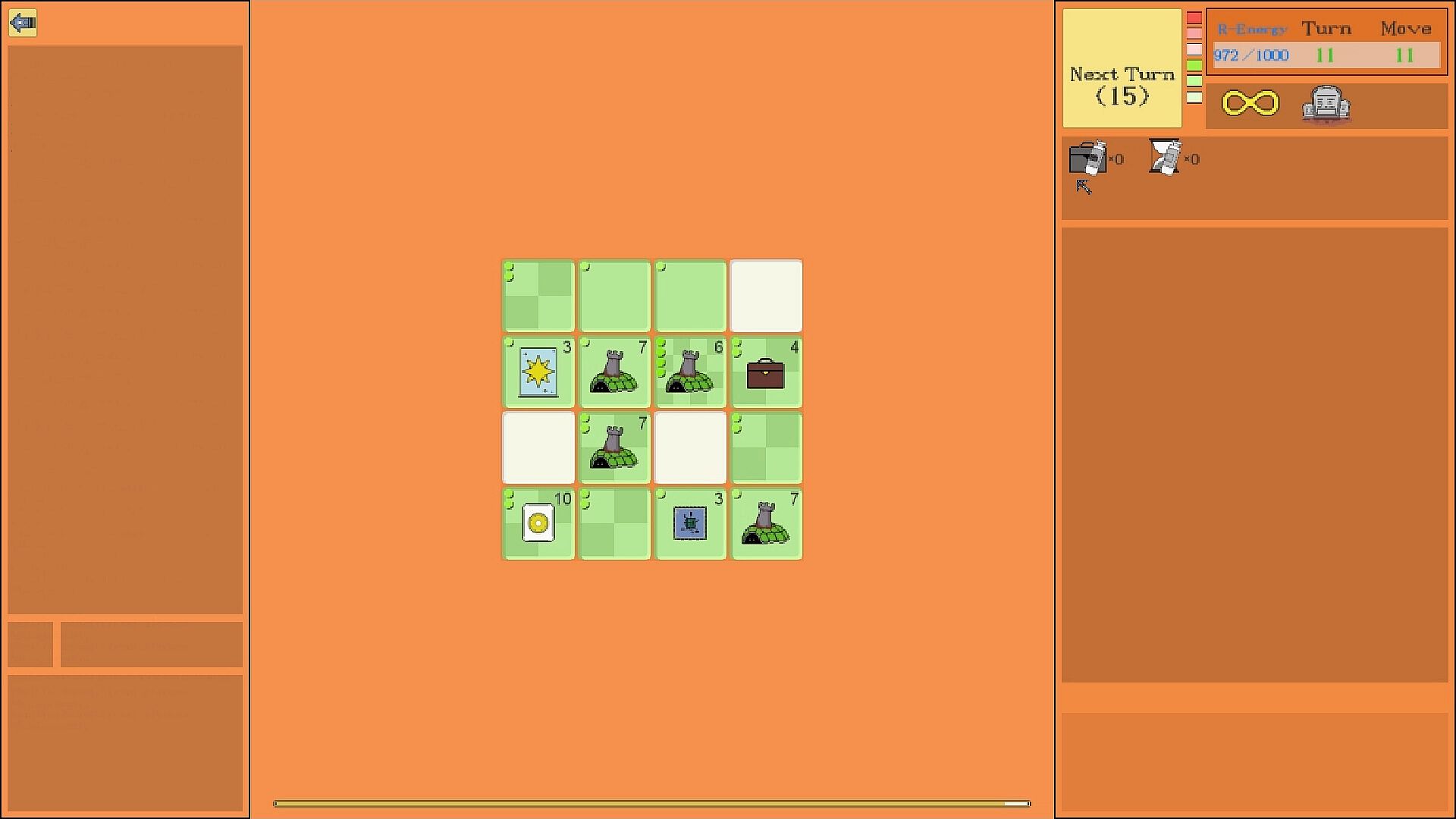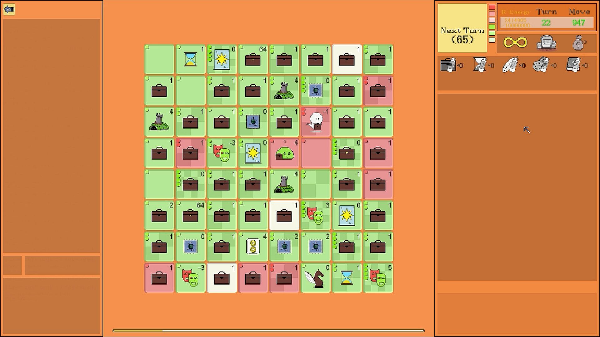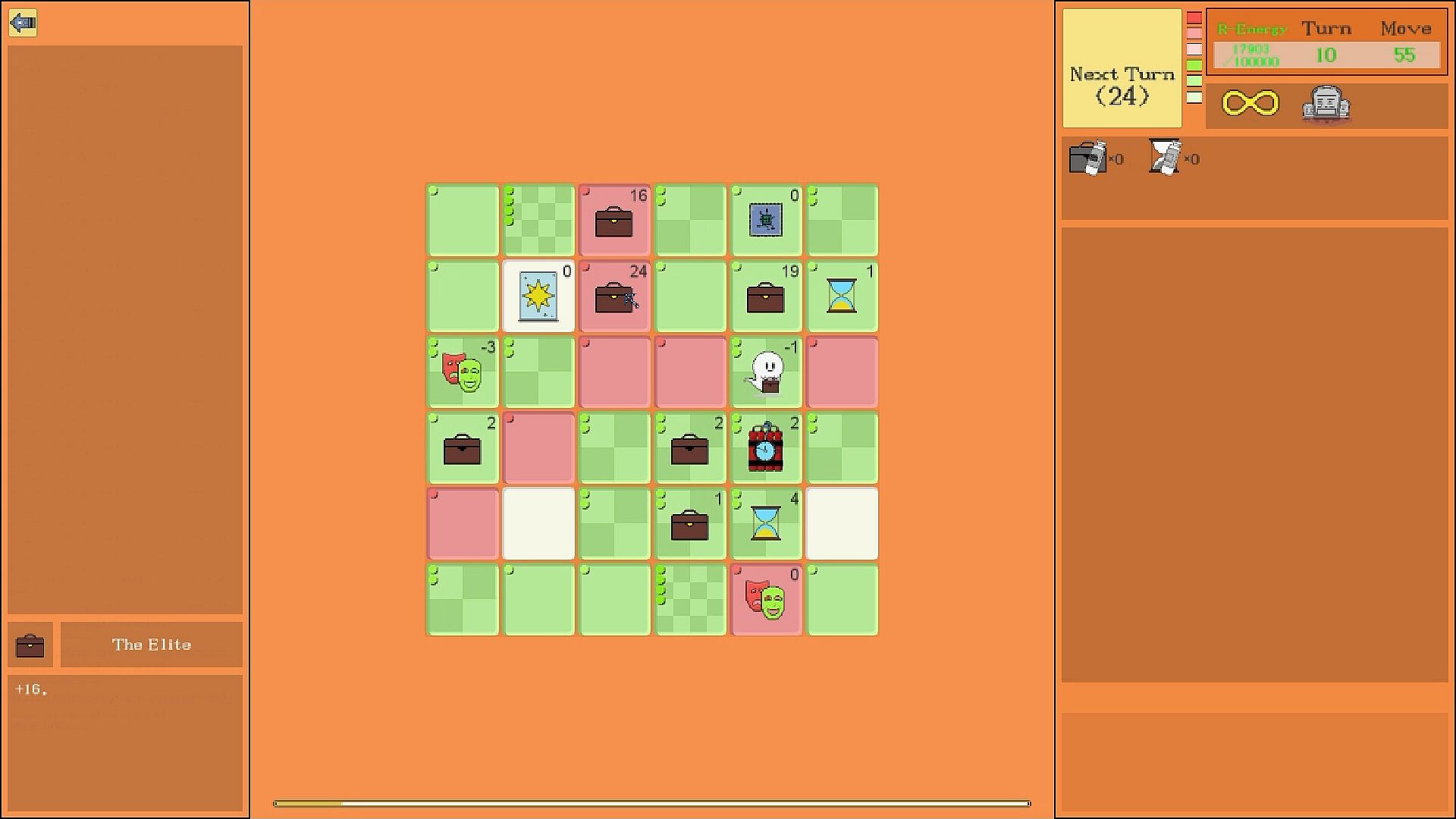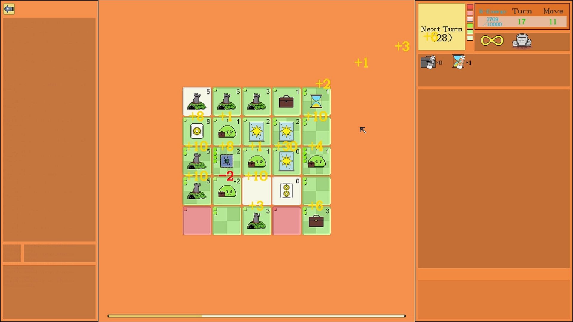 This time you are tasked to help a simulated company to find ways to maximize income (or, energy). Deploy and move units, choose proper commands and policy, and do whatever else to expand the company, and collect as much income as possible before turns burn out. Remember, put the right units into right cells, and there will be income. It’s just that easy.