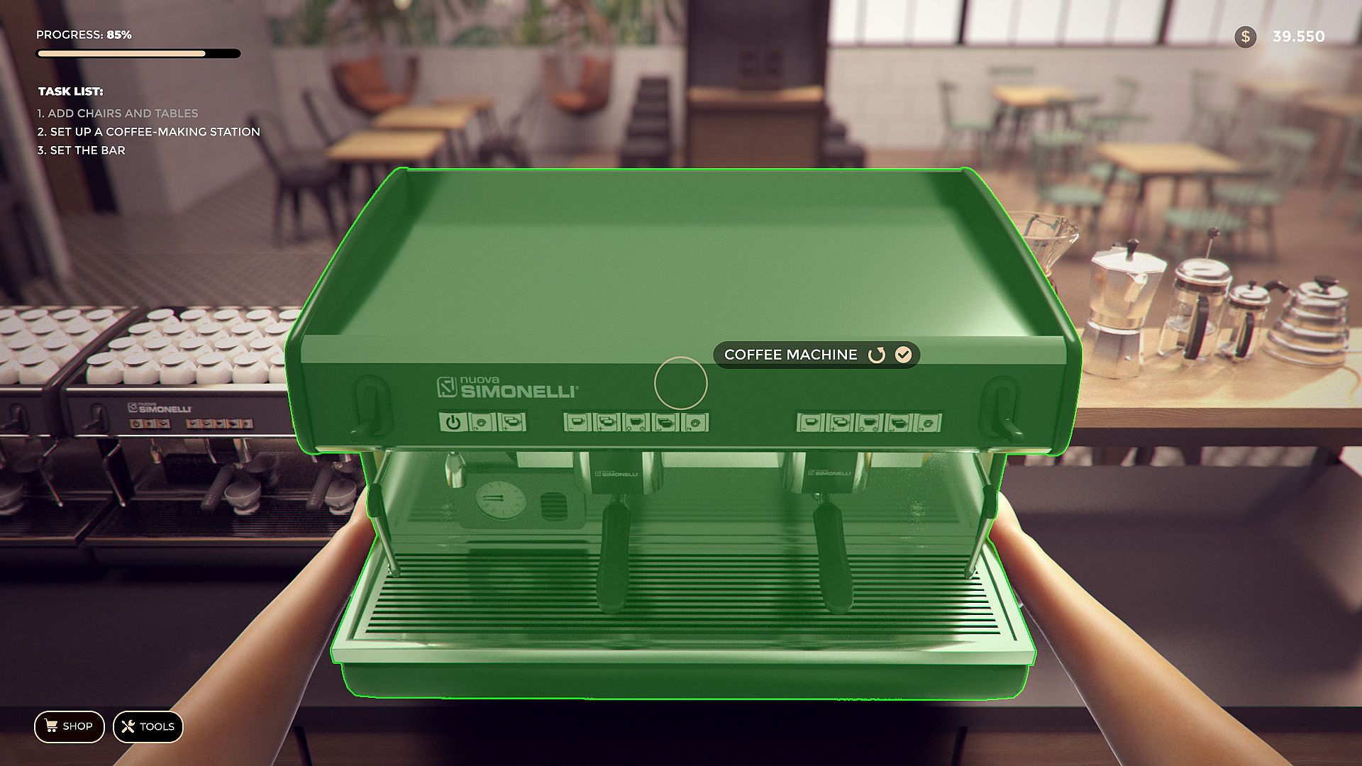 You already have a place and what's next? Expand your franchise network! Choose a logo and company name, then sell the premises for use to others for a monthly fee. Earn money at pre-arranged coffee shops. Create the world's largest brand for aromatic coffee lovers. Be the richest entrepreneur and espresso gourmet. Along with gaining the reputation of the brand, the area in which we can expand our business grows. We start with one city district, then we can unlock the entire city and even the country. Strive to capture the global coffee bar brand. All locations unlocked later have a higher level of complexity and difficulty.