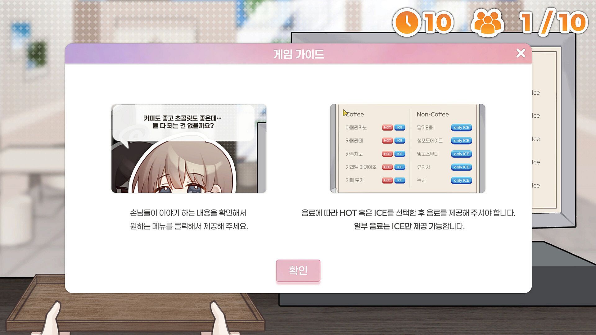 • Interactive Mini-games – Serve customers in a deduction-style café minigame where dialogue hints at their drinks.