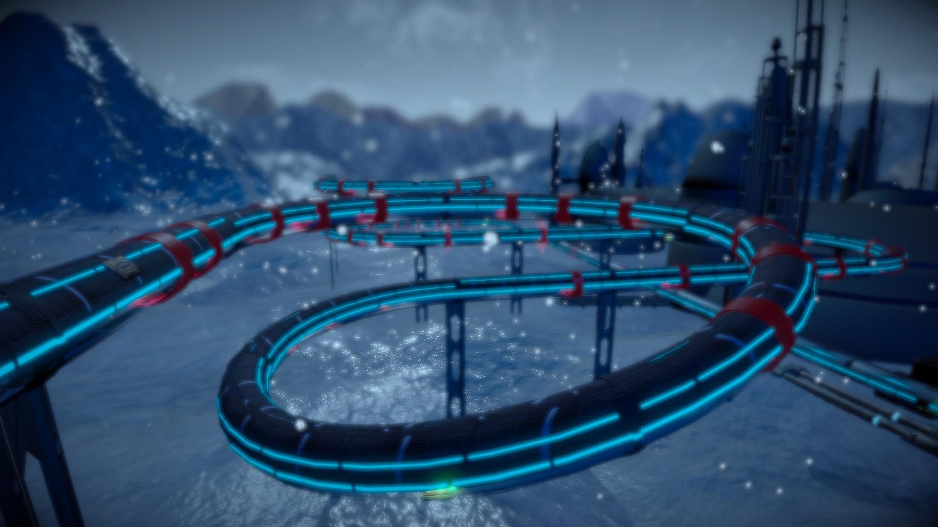 Gravity-Defying Racing – Your vehicle sticks to the inner surface of massive semi-transparent tubes. Ride on the ceiling, spiral around corners, and dodge obstacles at breakneck speeds.