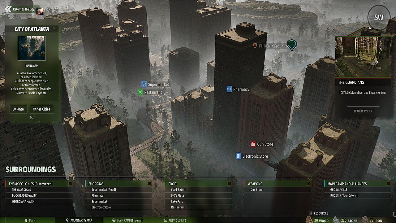 After the great catastrophe, some of the survivors united and founded their own colonies. In this post-apocalyptic new world, humans were more dangerous than the dead. Formulate your own strategy and prove your leadership to them!