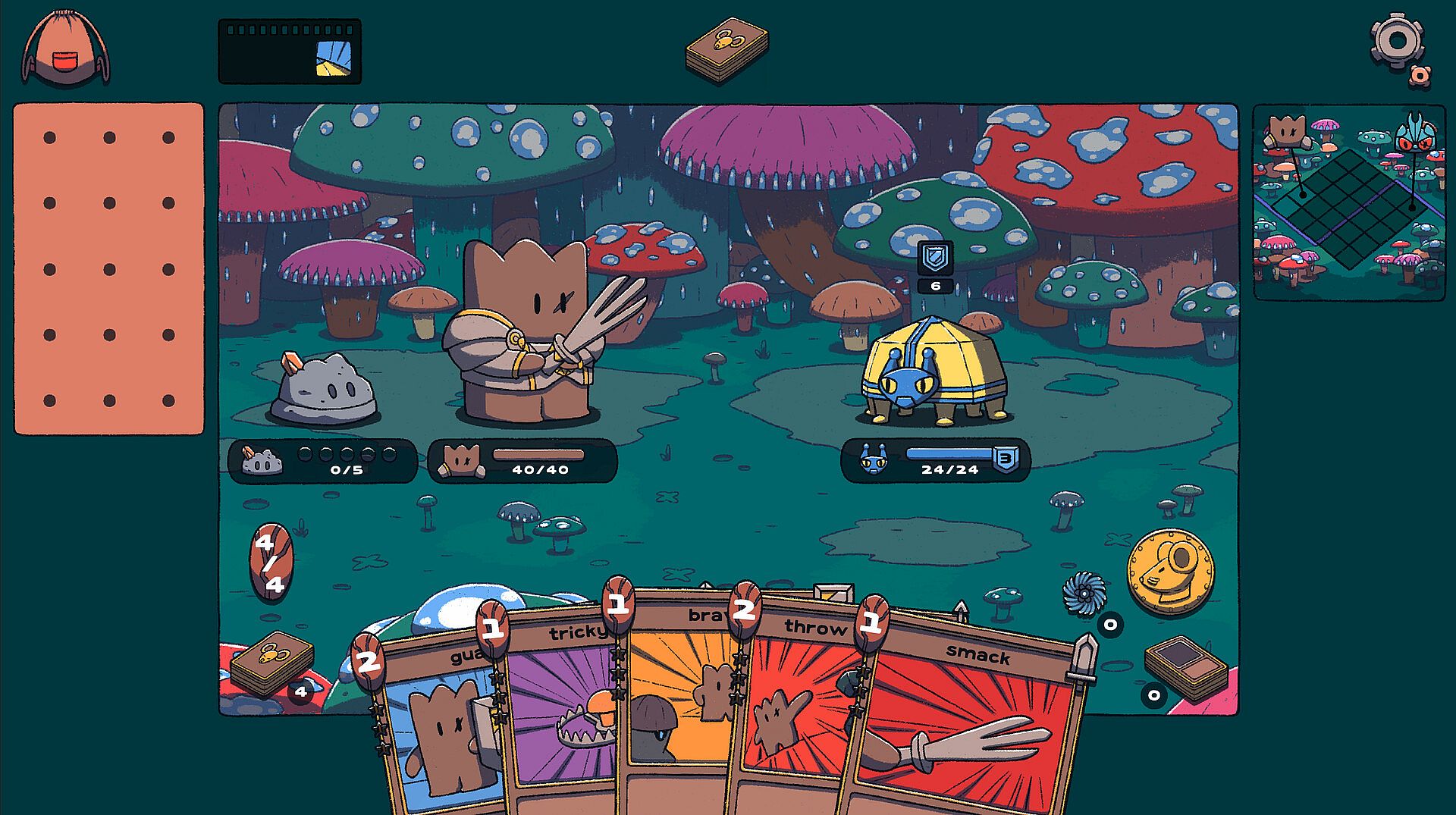 • Fork can pick and choose from (currently) 225 cards and upgrades to fight enemies in turn based combat!