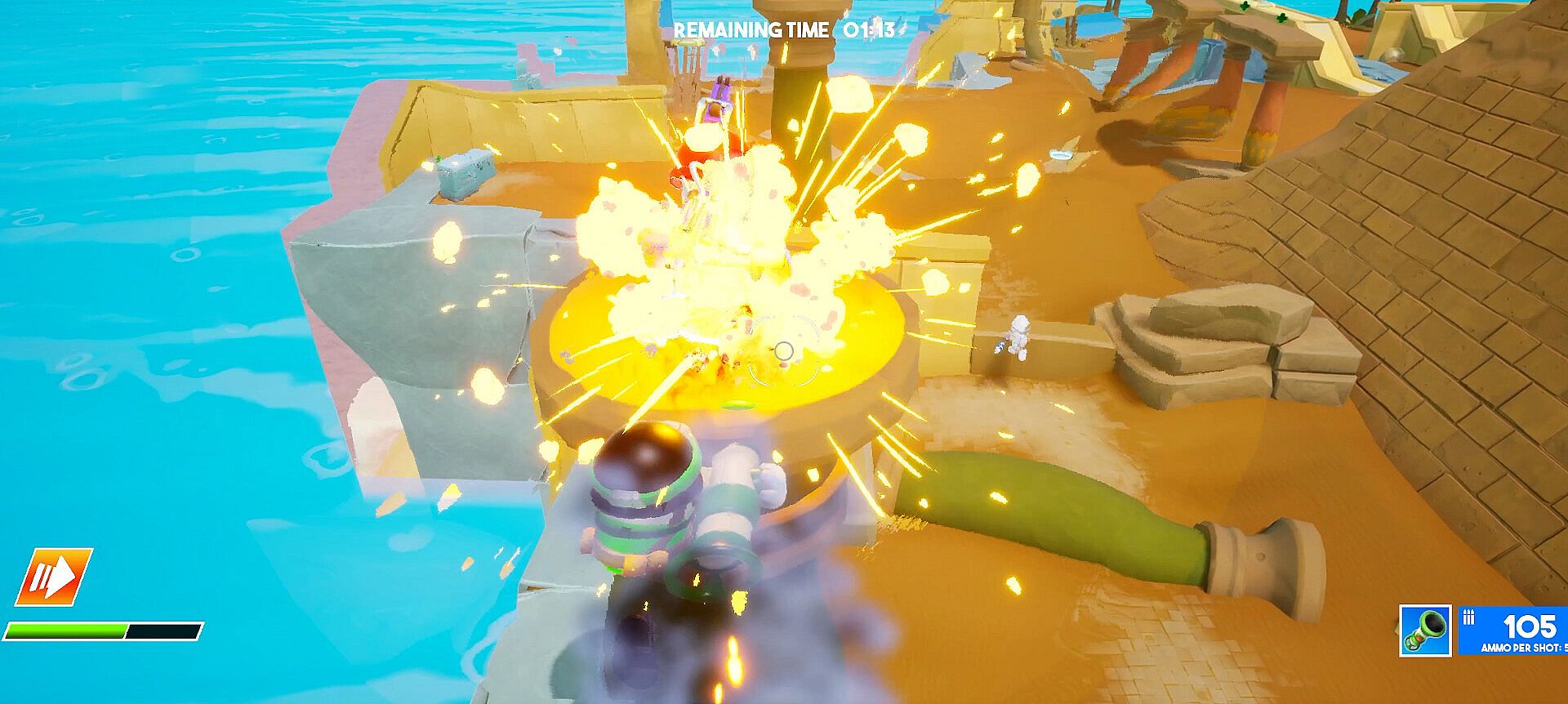 Combat Beans: Total Mayhem is a third person multiplayer shooter where you battle 12 other beans across multiple maps and game modes. Bully your buddies with a variety of guns such as shotguns, bazookas, miniguns and more. Gain EXP and unlock loads of cosmetics to climb the ranks and show everyone who`s the BOSS BEAN.