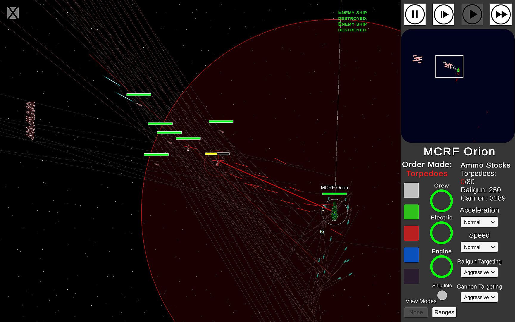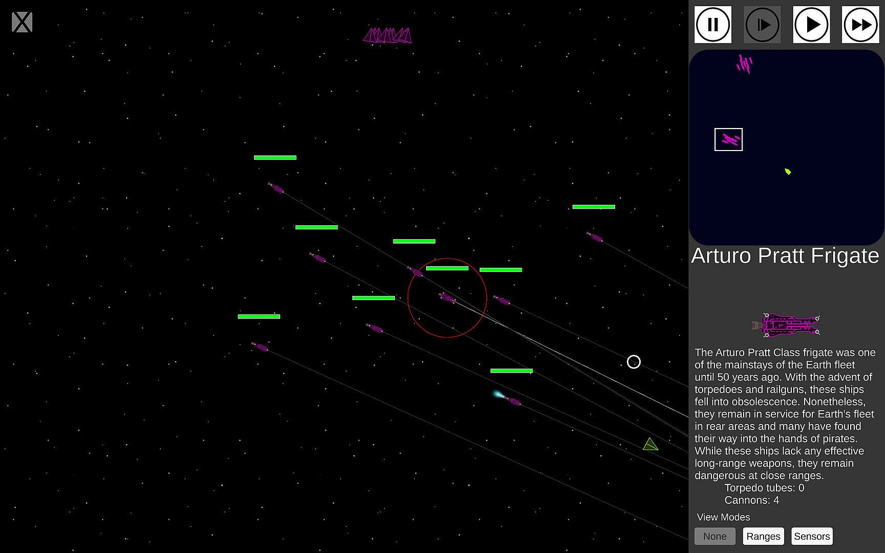 • Torpedoes can fire at long range and deal lots of damage, but can be intercepted by point defense cannons.