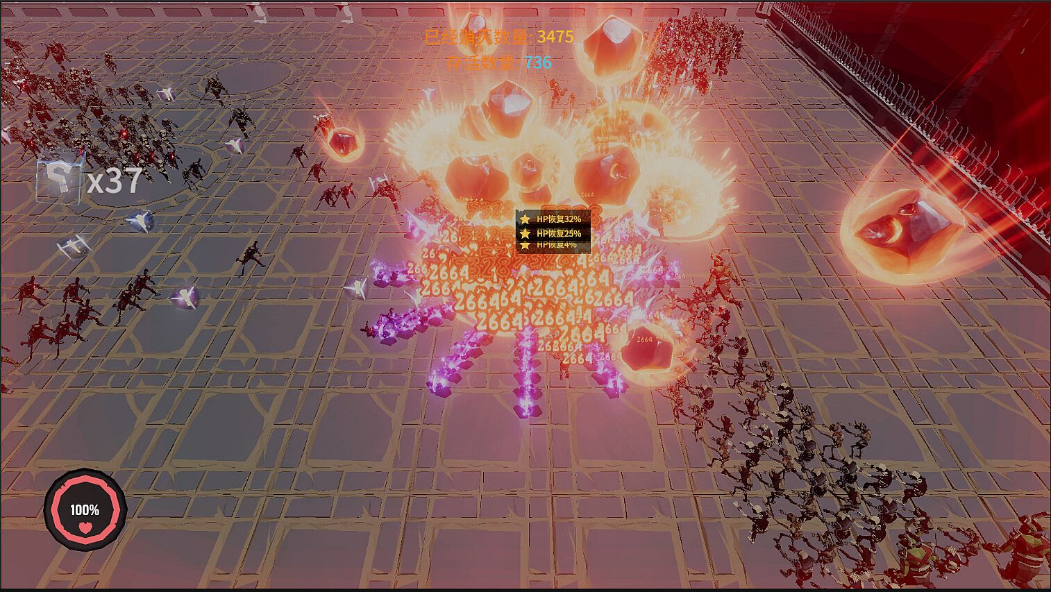 A 3D top-down action survival game where you need to continuously kill randomly spawned monsters from all sides to earn rewards that enhance your attributes to handle each wave of monsters. You can choose from various weapons to change your combat style. The goal of the game is to survive and kill more monsters!