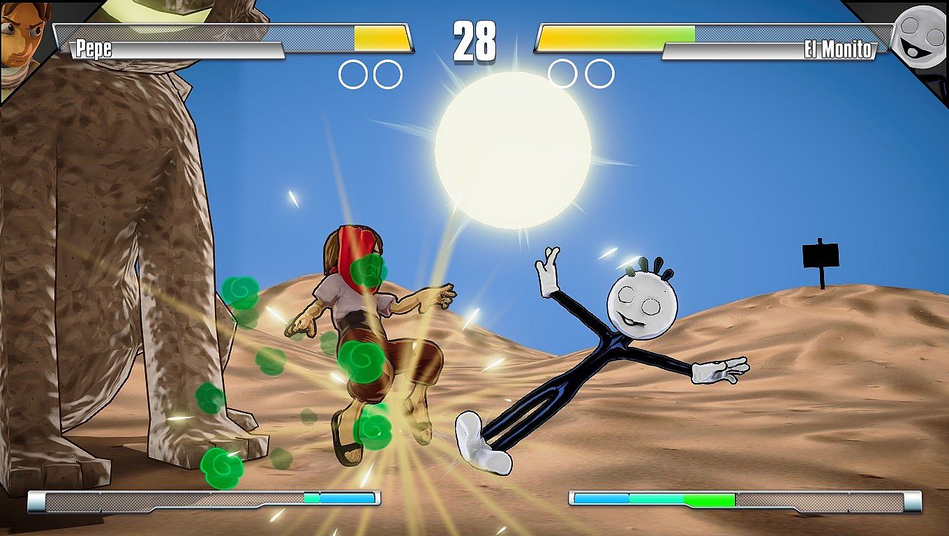 Combate Monero is and indie fighting game where different mexican comic book characters duke it out in combat. Sequel to our earlier game, Tzompantli, the fighting system is similar, with a fluid and dinamic style.