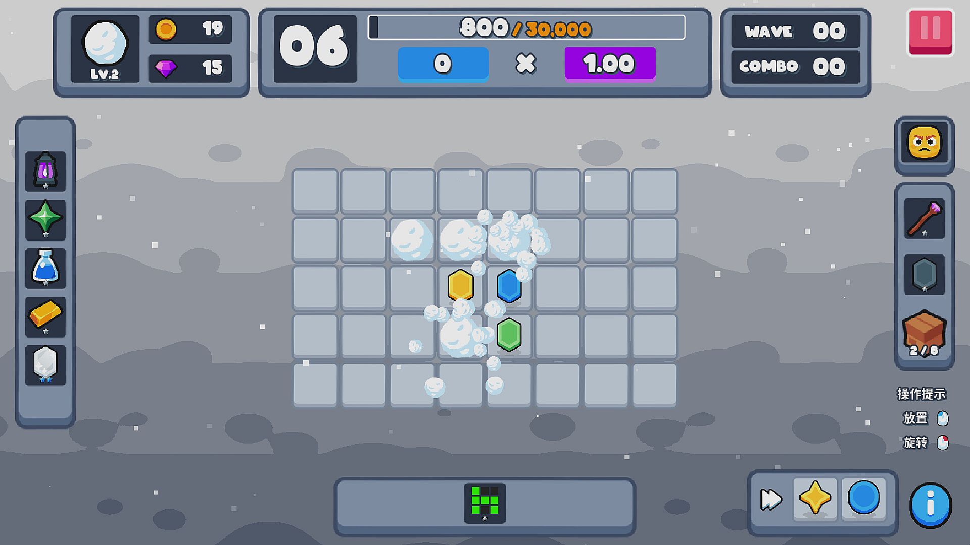 - Continuous matching triggers multiple combo waves, higher combo count brings greater score multipliers