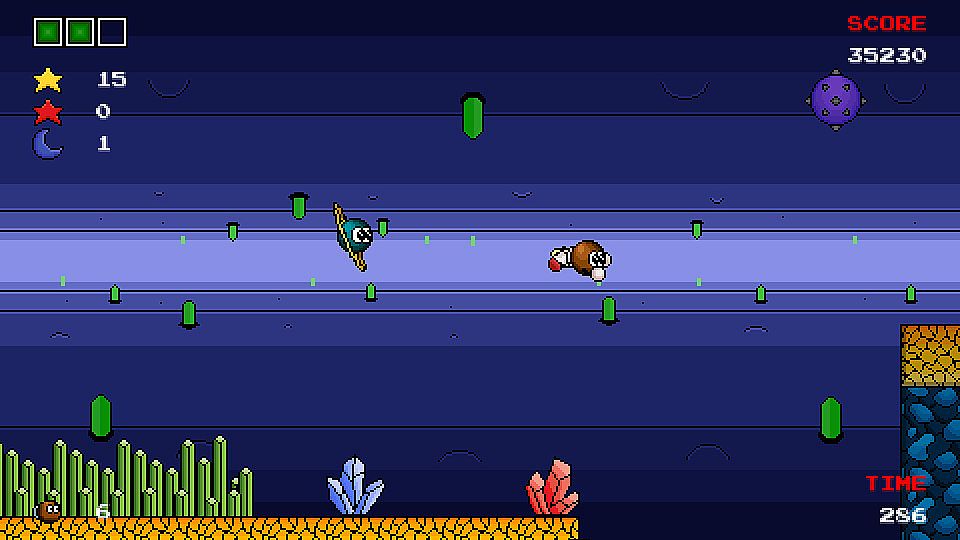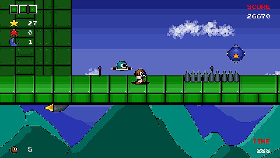 The evil space pirate Krater has escaped from Planet Prison and is wrecking havoc on the galaxy once more. Comit and Jupi must once again stop Krater before it is too late. Comit in Krater Returns is a platformer game where you will be running, jumping and bursting your way though several stages collecting items, crushing enemies and saving the universe again. Collect 5 Red Stars in a stage to go to the bonus stage where you play as Jupi through a timed maze like area. It's the only way to unlock Meta Comit. New items include shields for an extra layer of protection, Hearts to refill health, clocks to boost the new time limit systems and moon shards which can increase your max health system. New to the game are high scores and speed runs to compete with the community or for personal bests.