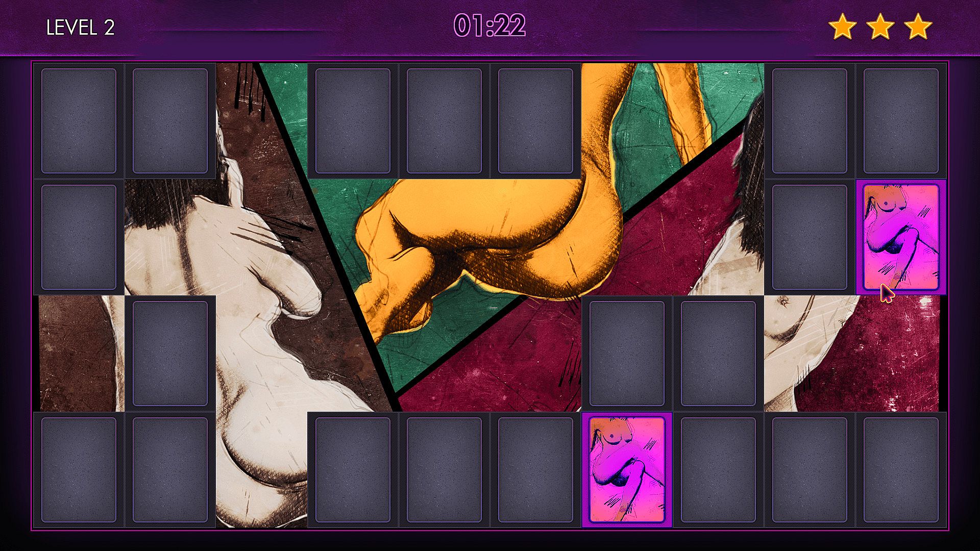Comixxx Memories is a casual game with a relaxing atmosphere. Enjoy the classic card match gameplay and try to reveal the girls! Earn all the stars to beat record scores and unlock achievements & bonus level.