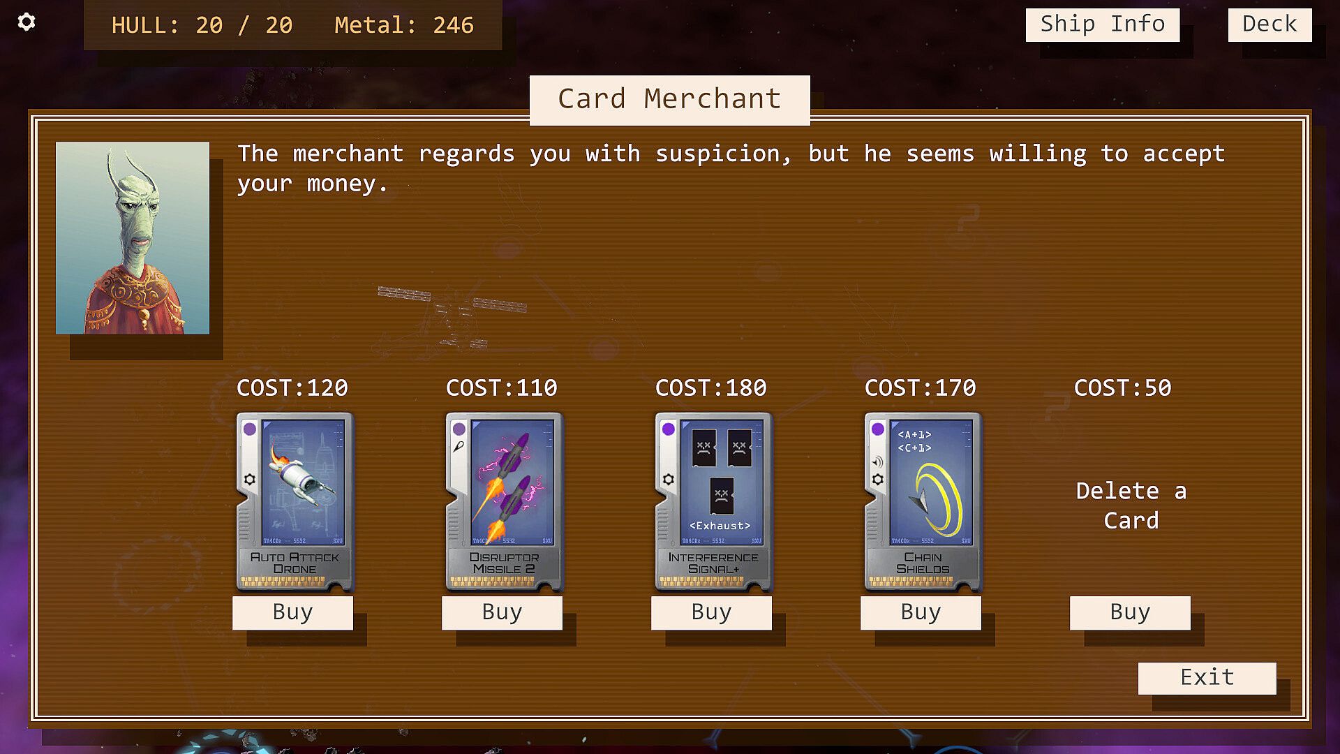 Command Deck is a sci-fi, deckbuilding, turn-based roguelike where you control your starship with a deck of cards.