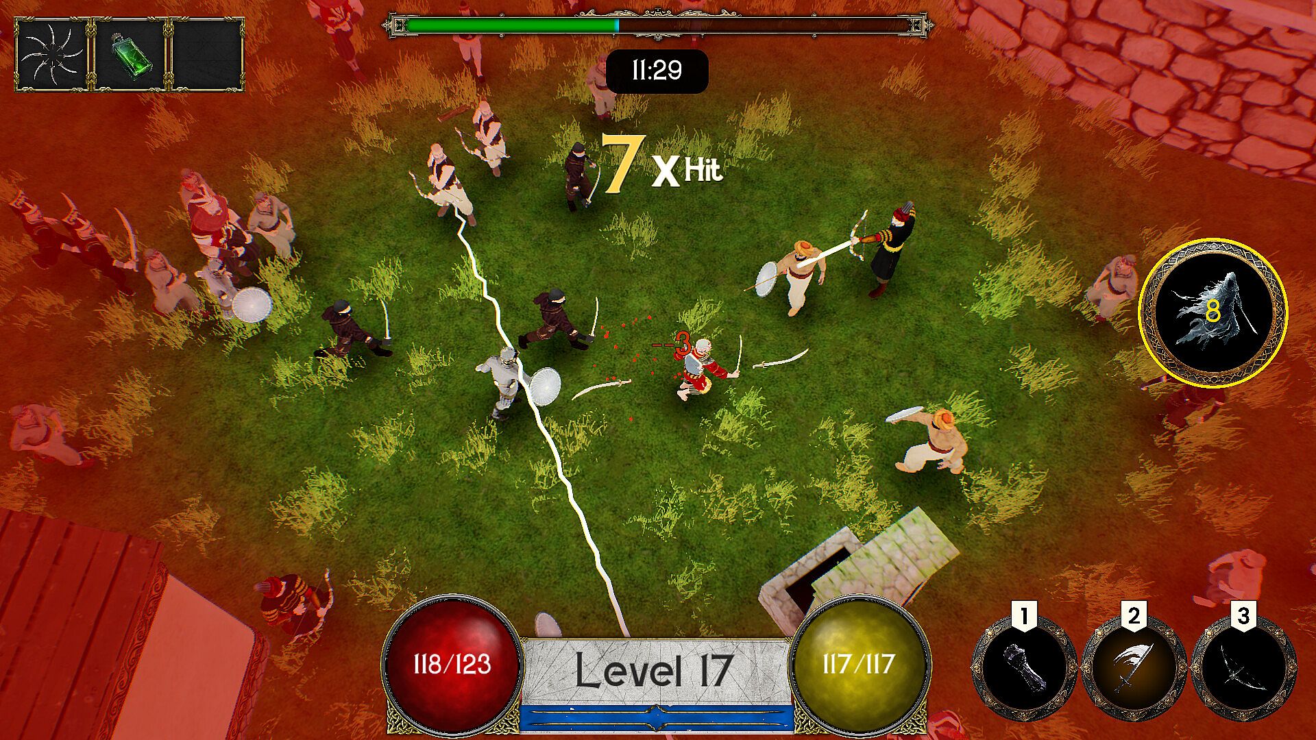 The time you survive, the number of enemies you kill, and the level you reach determine your score. This increases competition and encourages players to perform better.