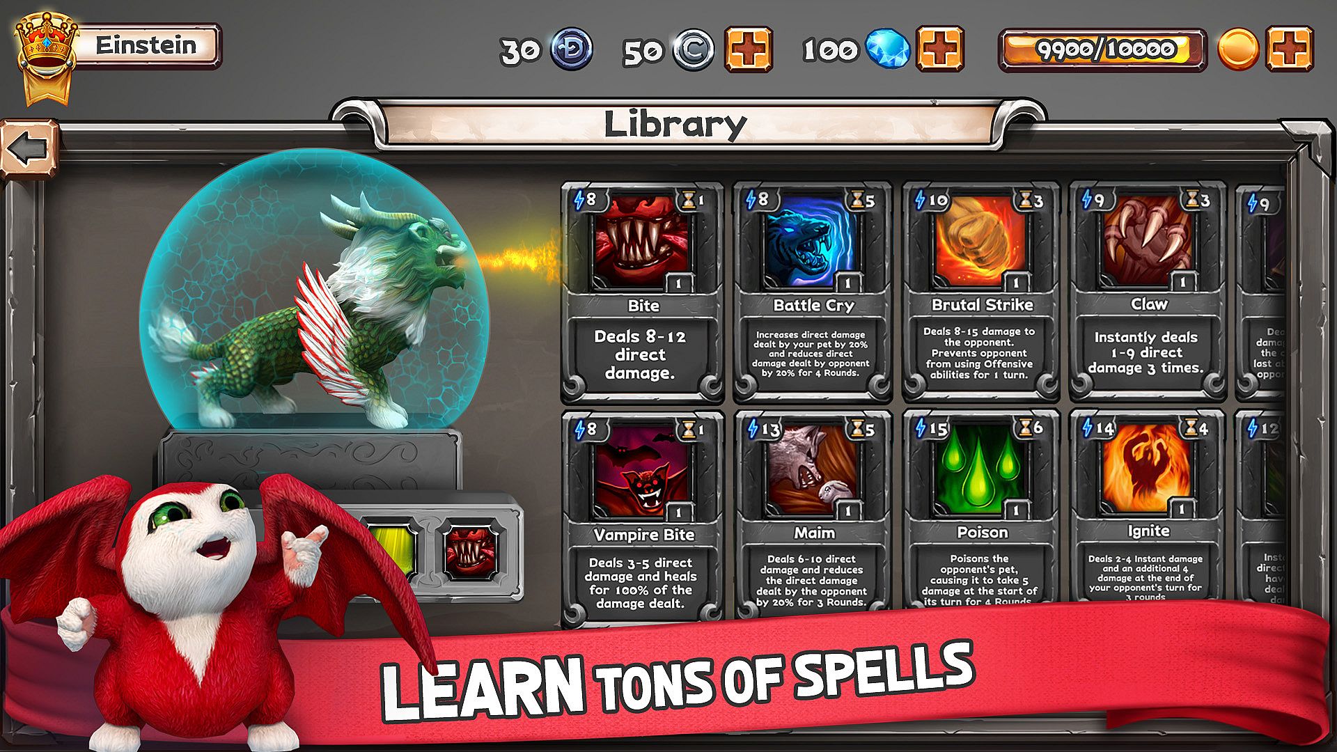 But knowledge alone isn’t enough — you must hone your pet’s skills! The precious experience points needed to level-up can only be gained by battling and questing.