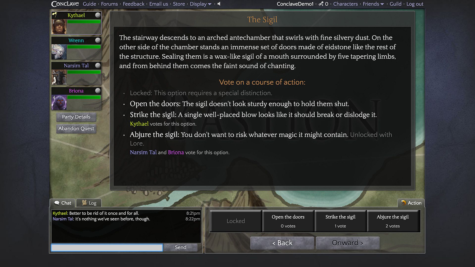Conclave is an online RPG with the story and turn-based combat of a classic fantasy tabletop campaign. It supports both solo and co-op parties of up to four players, who can adventure together in real time or take turns separately at their leisure.