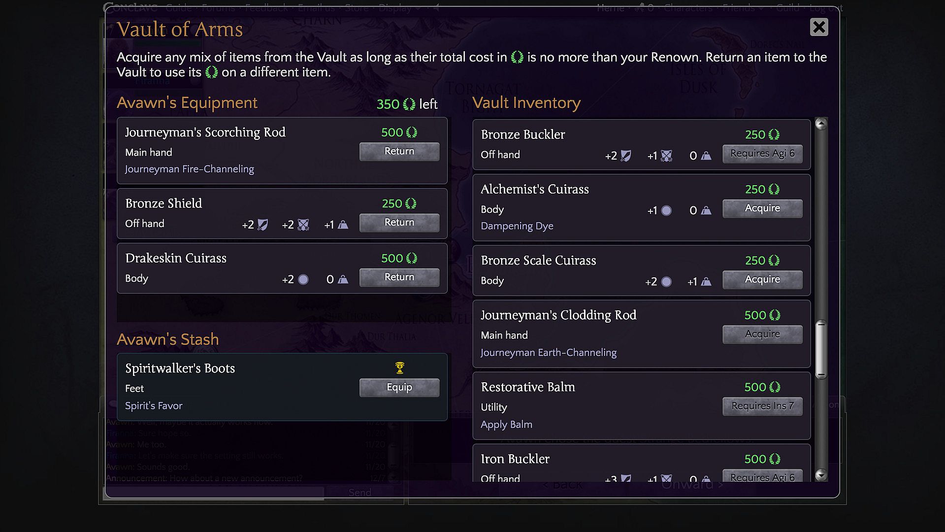• As you gain renown, the Conclave shares better equipment to complement the special items you discover on your adventures. No scrounging for useless items to resell.