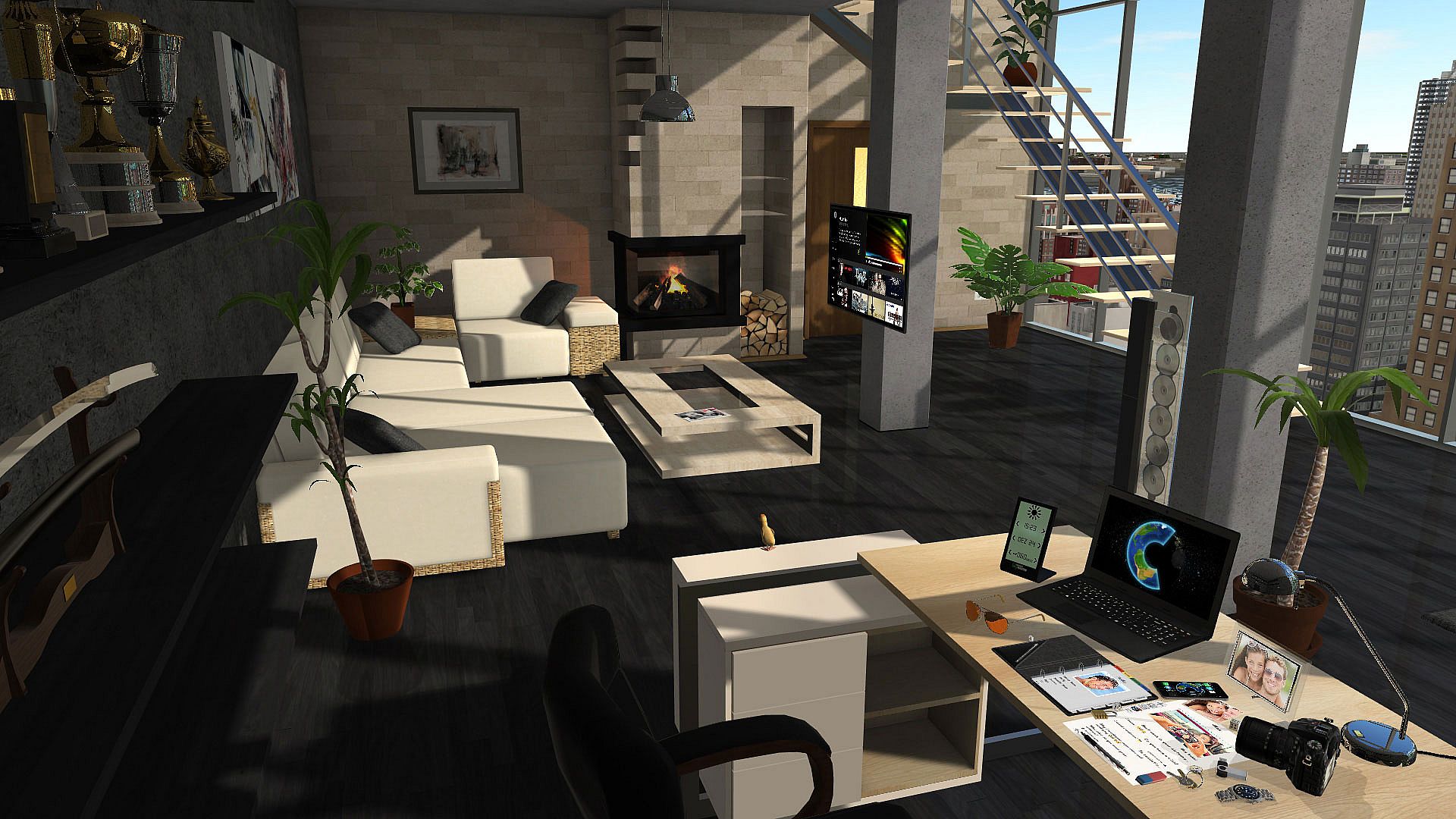 To get rid of these unnecessary irritants it is our goal, with combined strength, to build a network which unifies all the different digital contents and features, and where the utilization and operation is as easy as possible. For this purpose we have created a platform, where our Partners – and you too! – can upload content. Our partners will be uploading, among other things, 3D models of new objects or furniture, media content such as newspapers, magazines, books, TV or radio programs, or link connect with existing messenger services. You can upload art work, photos as decoration, animated GIFs or videos, sounds, or 360° photos for an alternative view from the loft, and determine who has access to it.