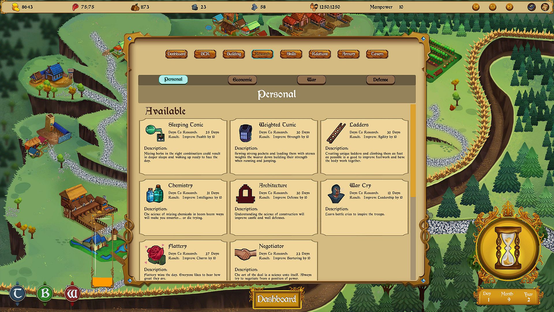 • Research – Advance technologies to improve your kingdom’s well-being, defensive capability, trade ability, military might, and more.
