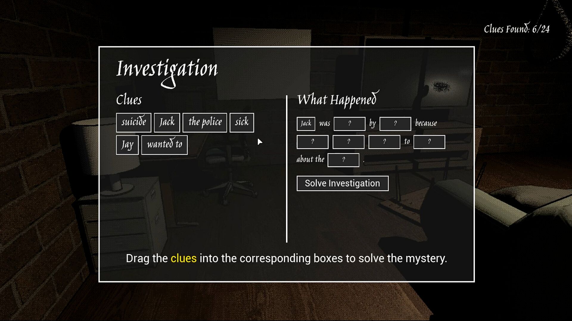 Deduce what truly happened using the clues you’ve gathered to solve the mystery.