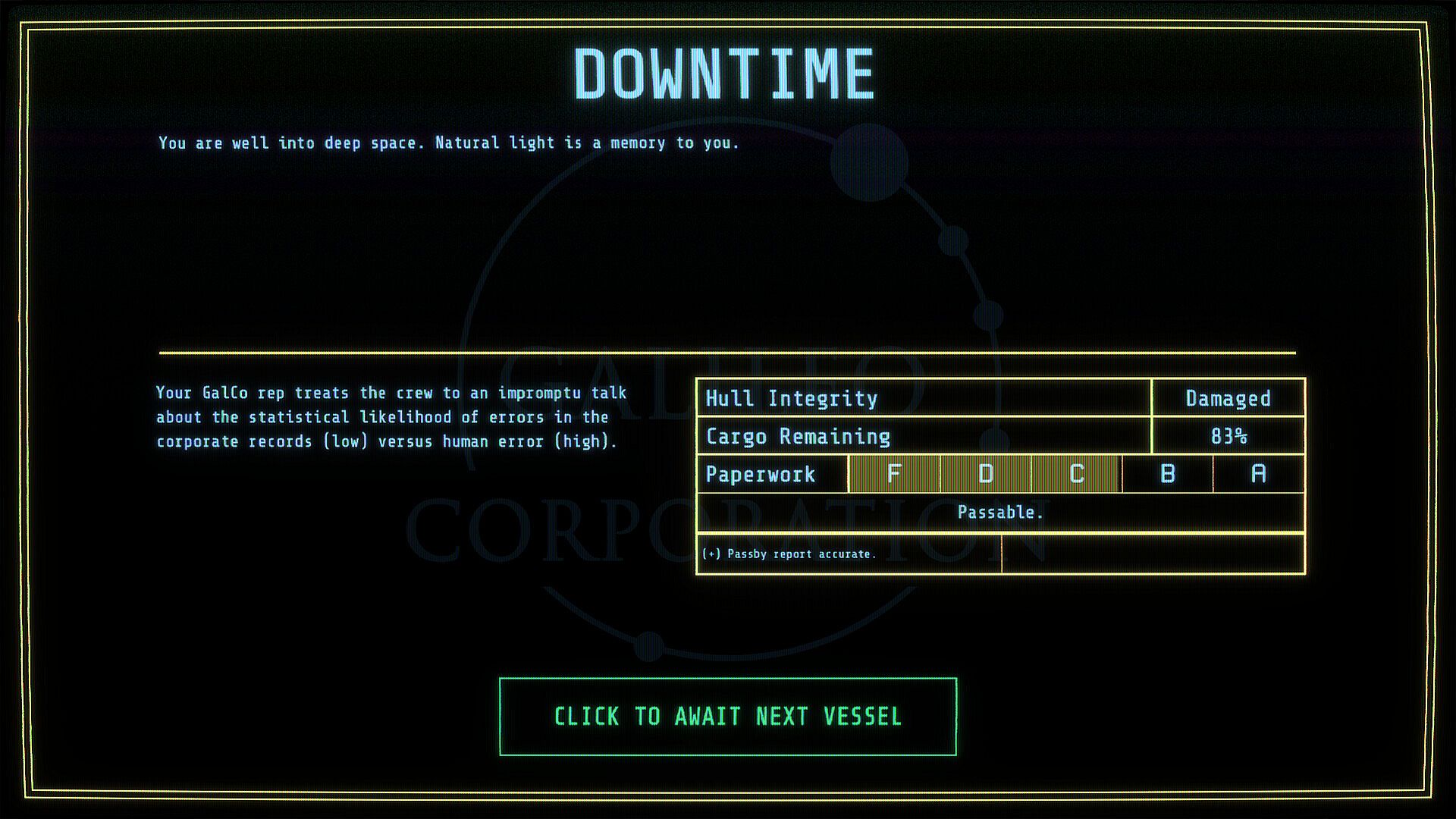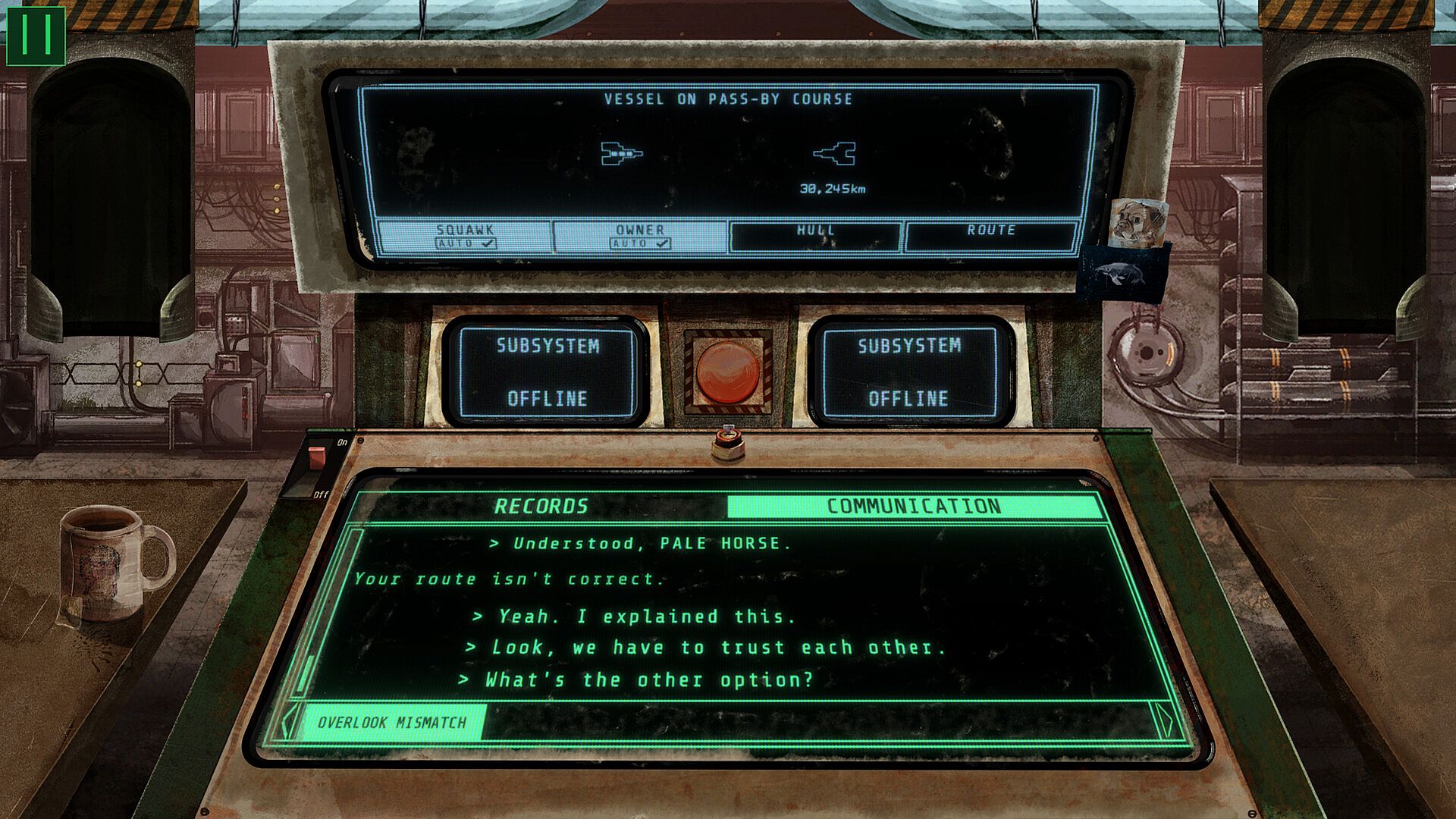 You play as the security officer aboard PALE HORSE - a Galileo Corporation vessel carrying miners set for Ganymede, Jupiter's biggest moon. It’s your job to assess the intentions of approaching ships, decide their fate, and keep your crew alive. The company is watching.