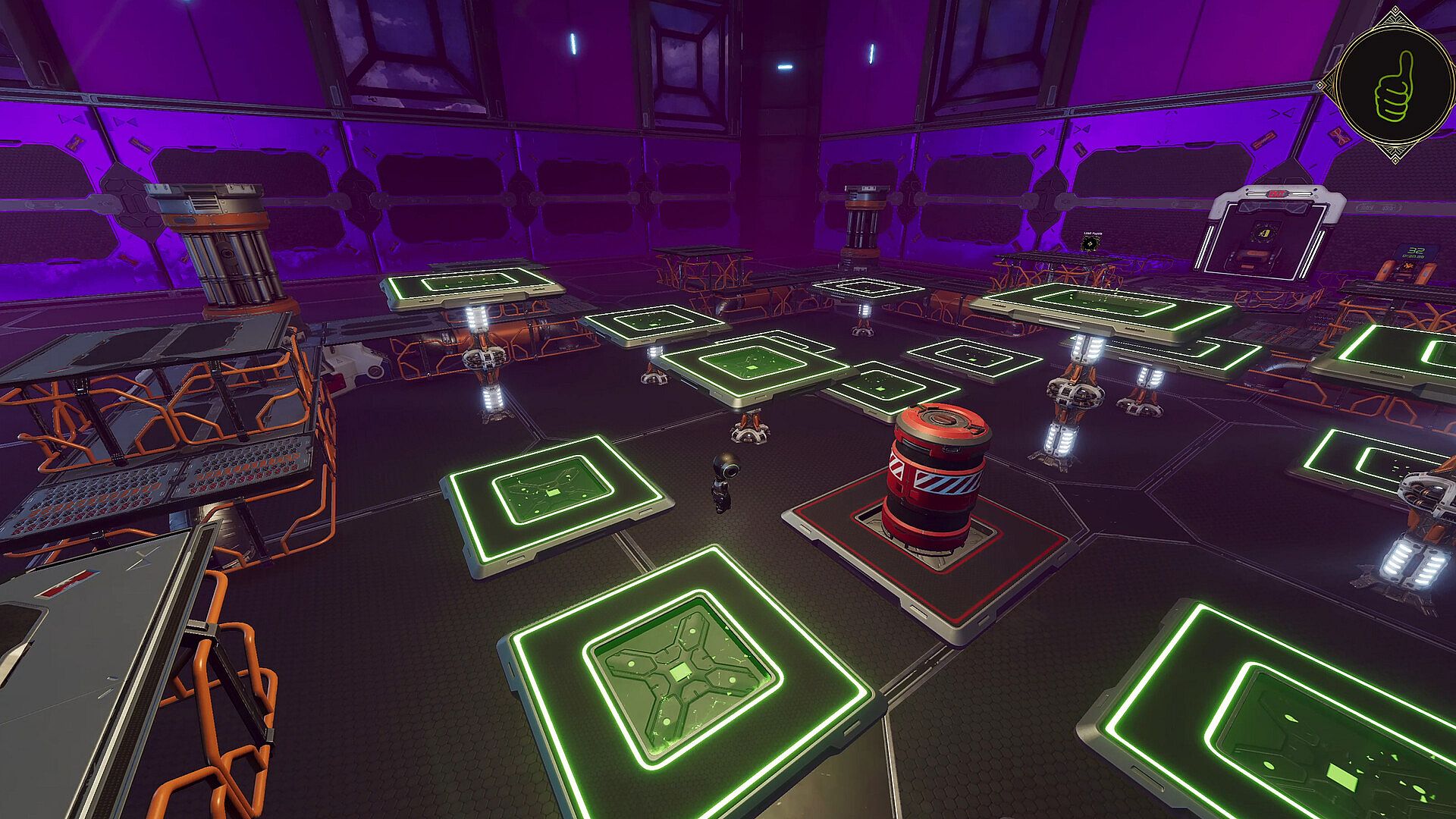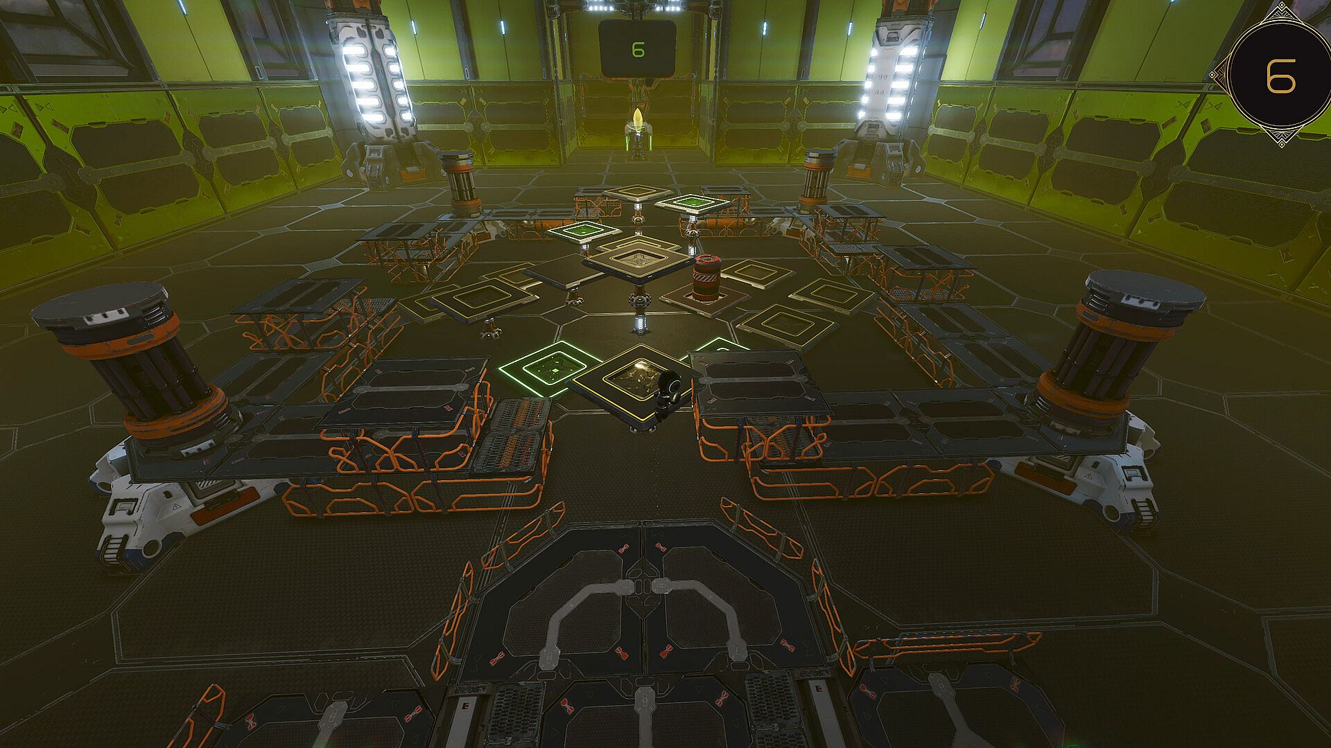 The station is locked tight, every room sealed with a puzzle. They’re quiet at first—grids of tiles that flip and shift when you jump on them. Simple patterns become tangled, twisting into layered logic that demands focus. Solve one, earn a ProtoCore. Each challenge brings you closer to the truth, revealing fragments of the crew’s mysterious experiences and the station’s hidden purpose.