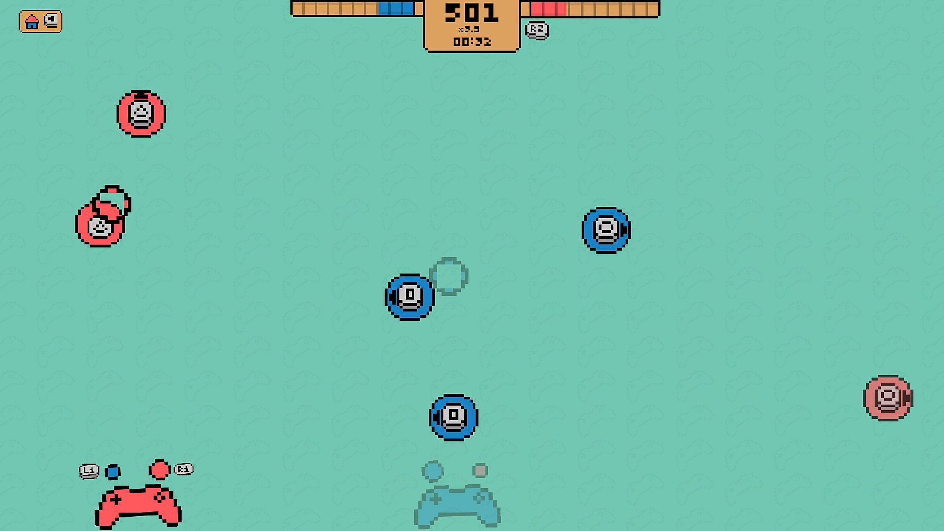 Controller Sync delivers an arcade-style reaction challenge on PC, where players sharpen controller skills against a global leaderboard. Guide a cursor with your joystick to hit nearby colored dots-blue or red-by selecting the matching controller color and pressing the right button. Over 60 seconds, fill color bars to boost time from blue, double your score from red, or activate a multiplier with both. Solo mode hones reaction speed and precise inputs, while Duo demands tight synchronization and communication with any online partner. Track your rank among all players after each run. Casual action-strategy players perfect for quick skill drills and competitive comparisons.