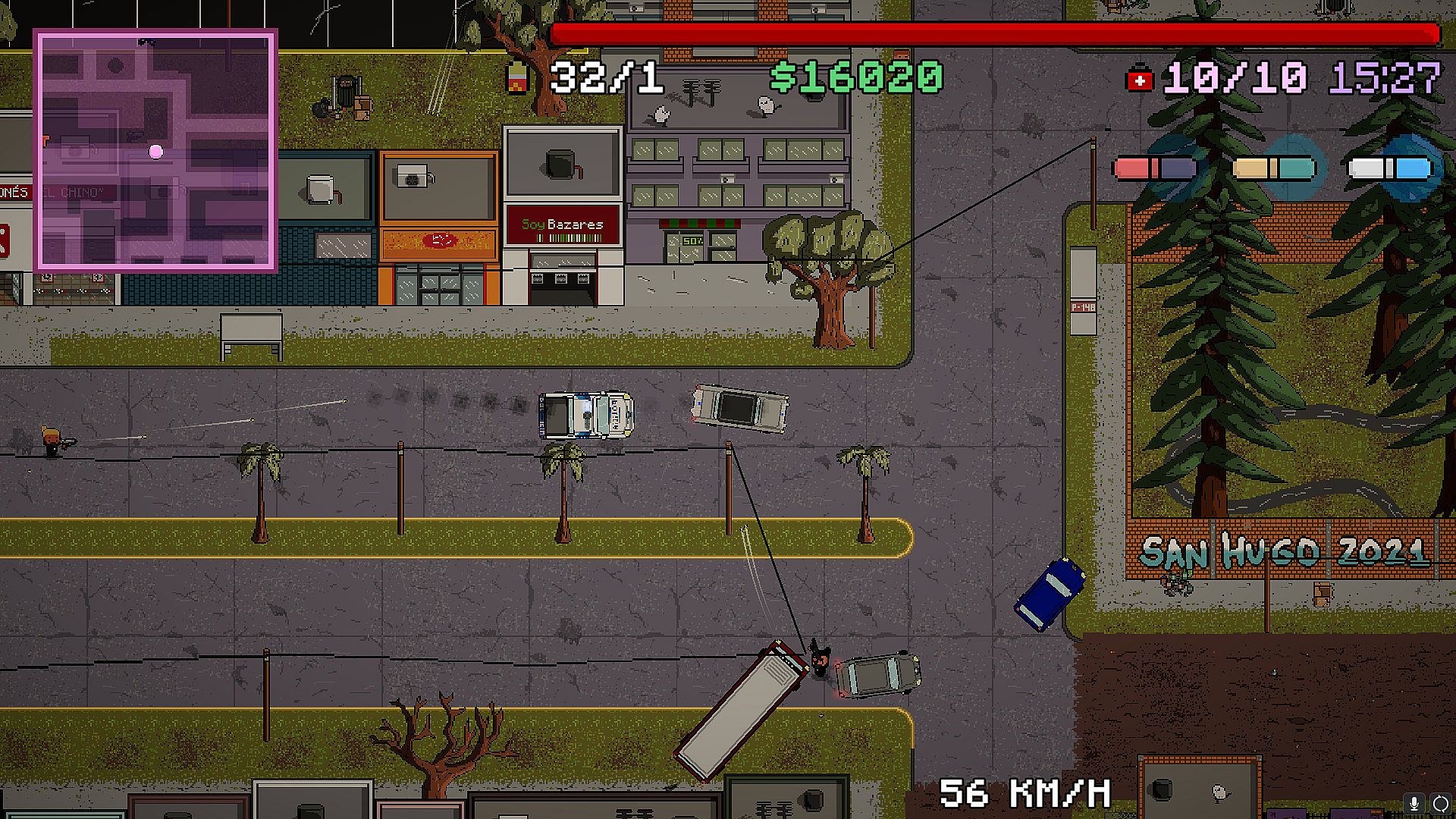 Conur Life is a 2D open world video game, inspired by the first Grand Theft Auto (GTA), and located in a fictional city in the suburbs of Argentina, called San Hugo, based on the town of Florencio Varela.