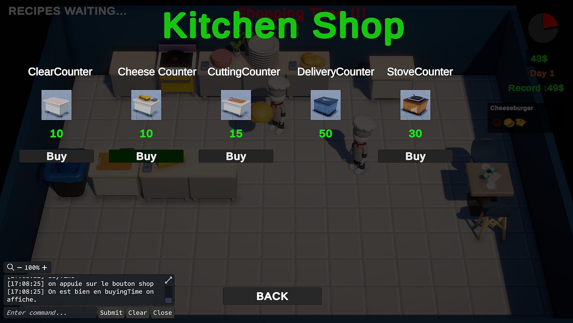 Between each day, customize your restaurant to respond more effectively to the types of customer that arrive.