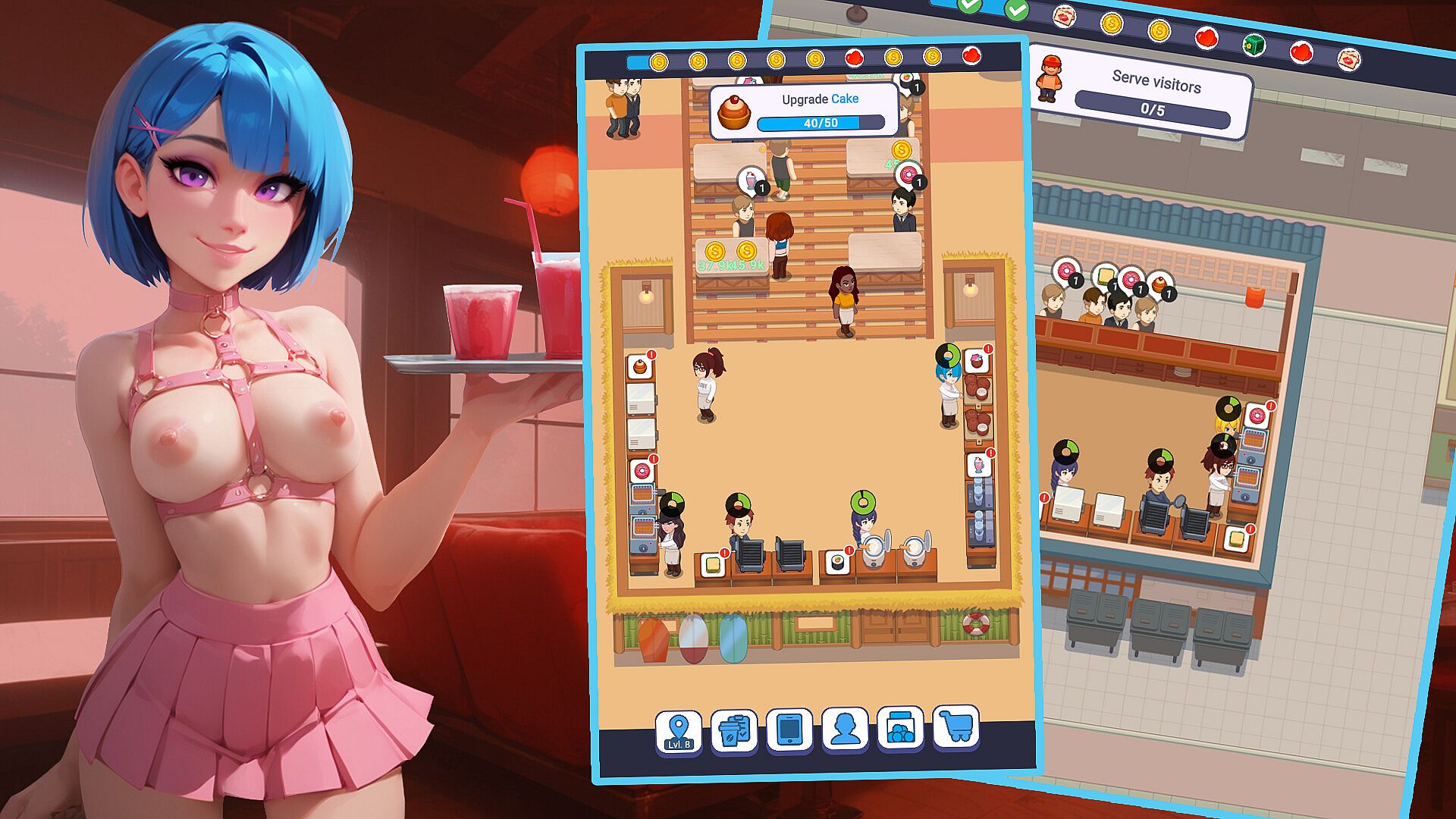 Business Simulator: run your erotic restaurant, expand your cafe, and increase profits.