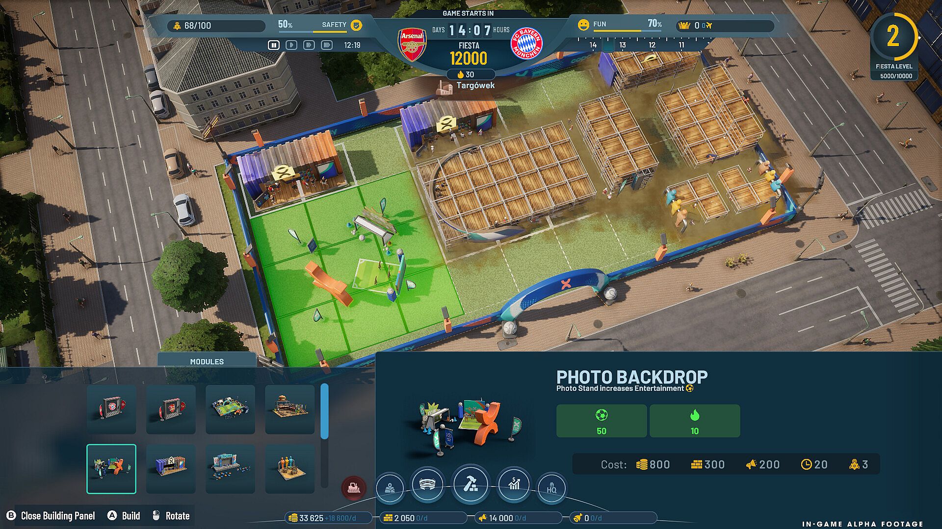 Build fan zones, expand infrastructure, plan transport routes, and balance fan excitement with the needs of local residents.