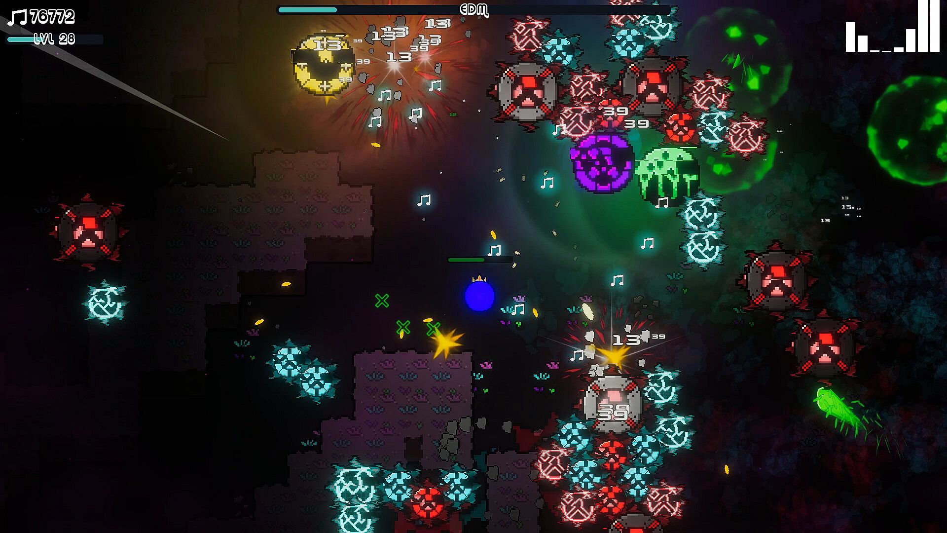 Experience an electrifying battle against music-synced enemies and add your own tracks to create unique patterns every round, customizing your gaming adventure like never before.