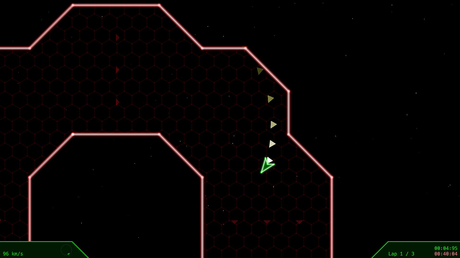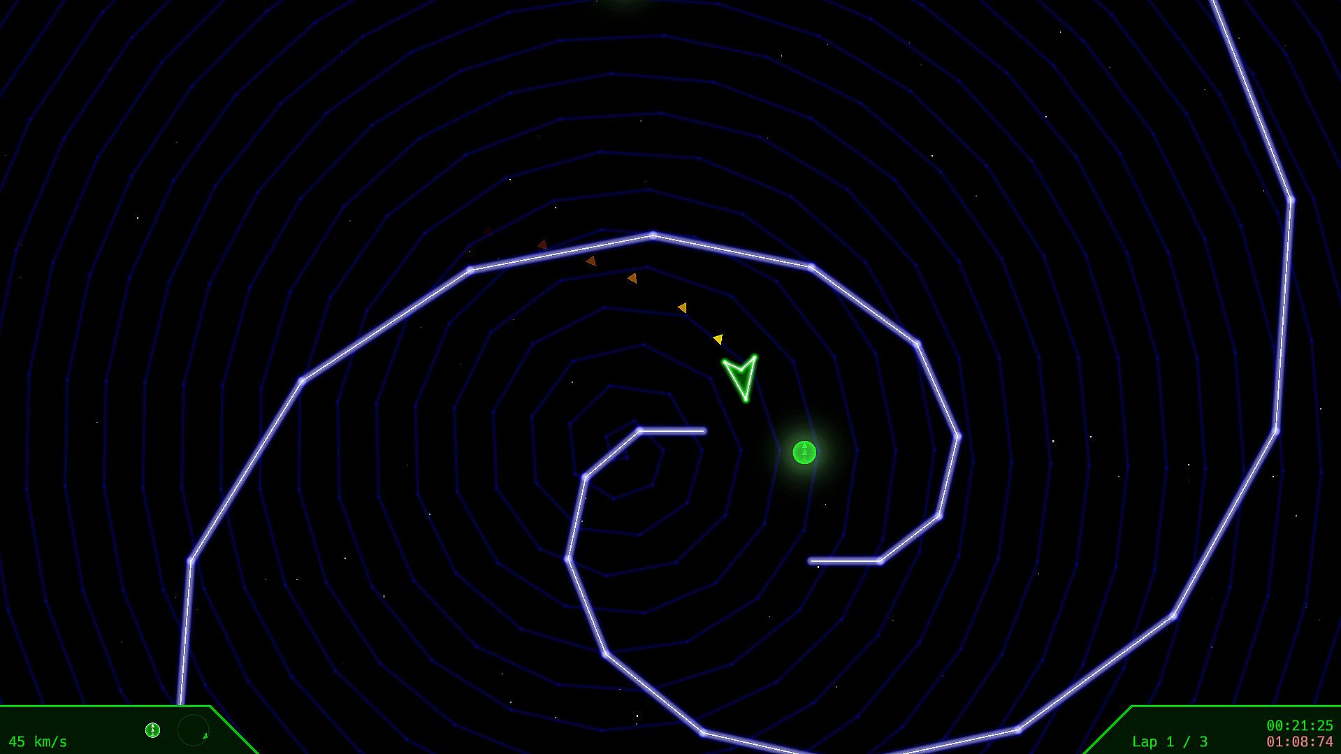 Cosmic Racer is an arcade vector racing game. Race against the clock as you navigate through neon vector space environments to achieve high scores. Skillfully maneuver through dynamic obstacles while utilizing boost and break abilities with precise timing for best results.