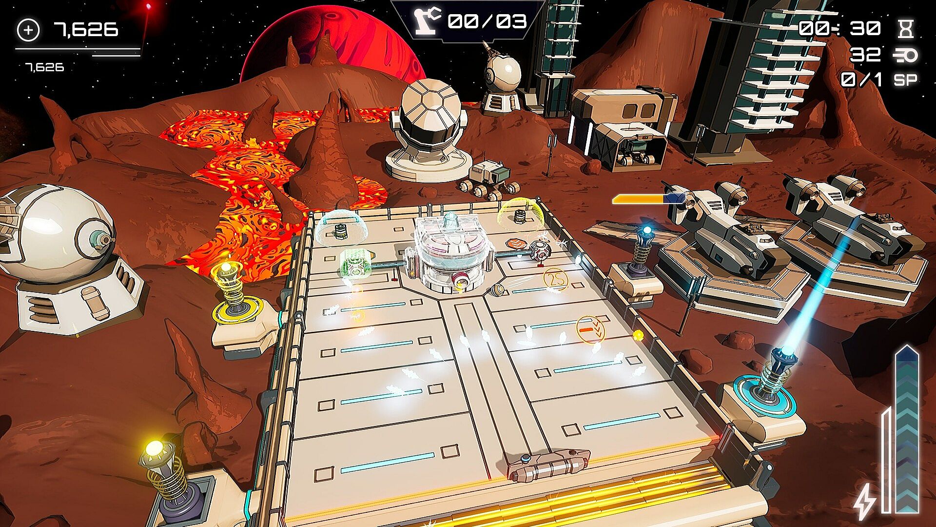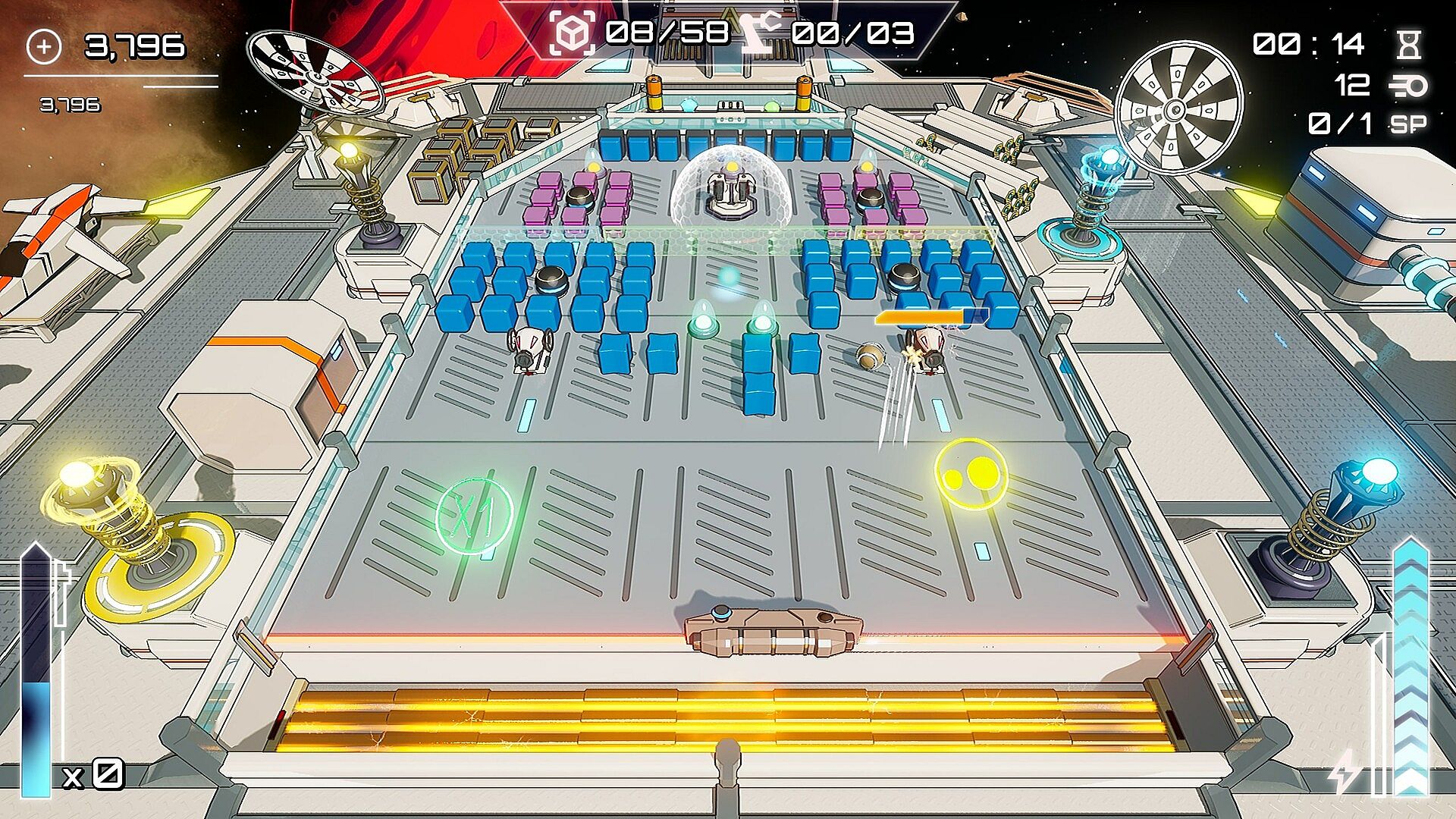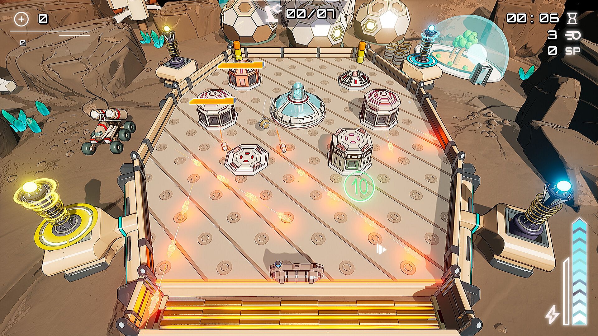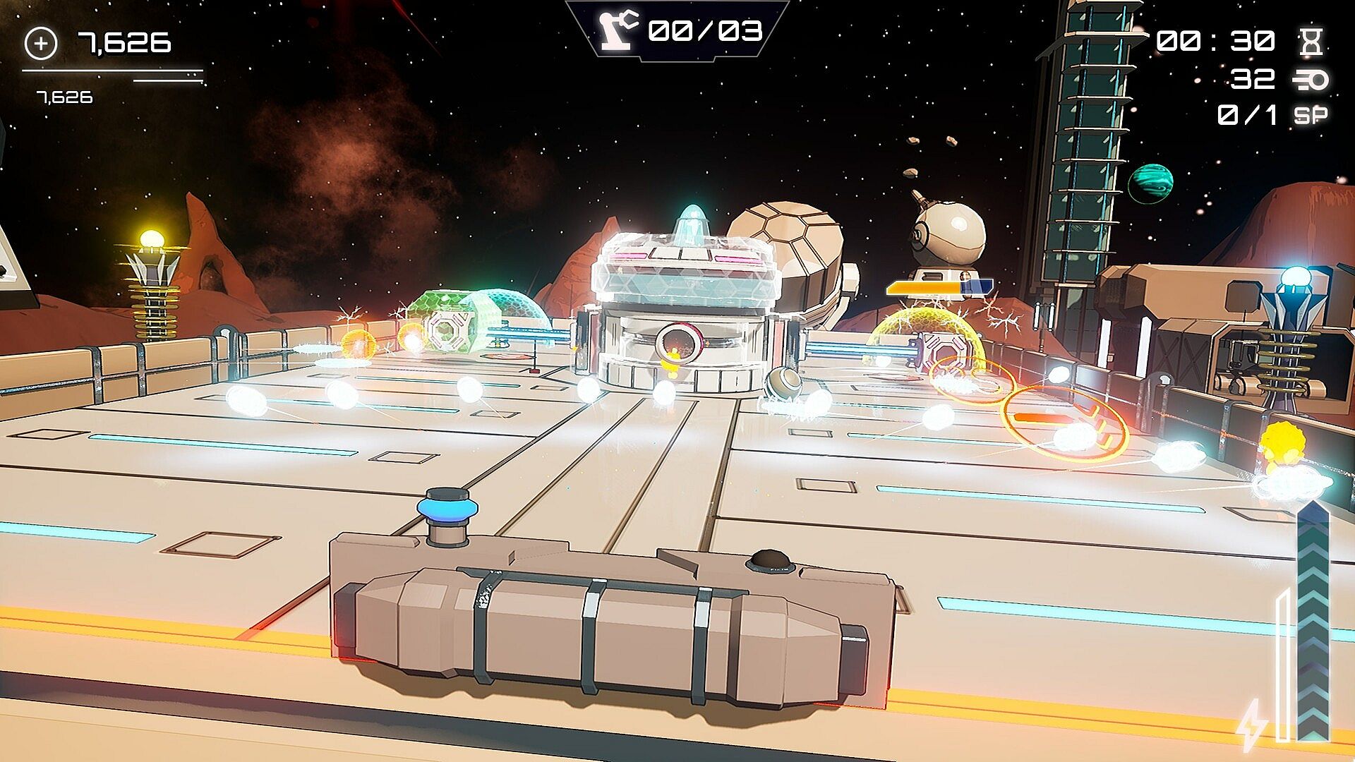 Upgrade Station: Collect resources extracted from broken blocks or destroyed enemies and use them to increase weapon power, tower range, paddle durability and much more