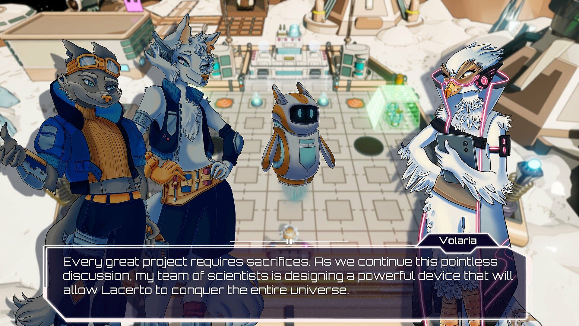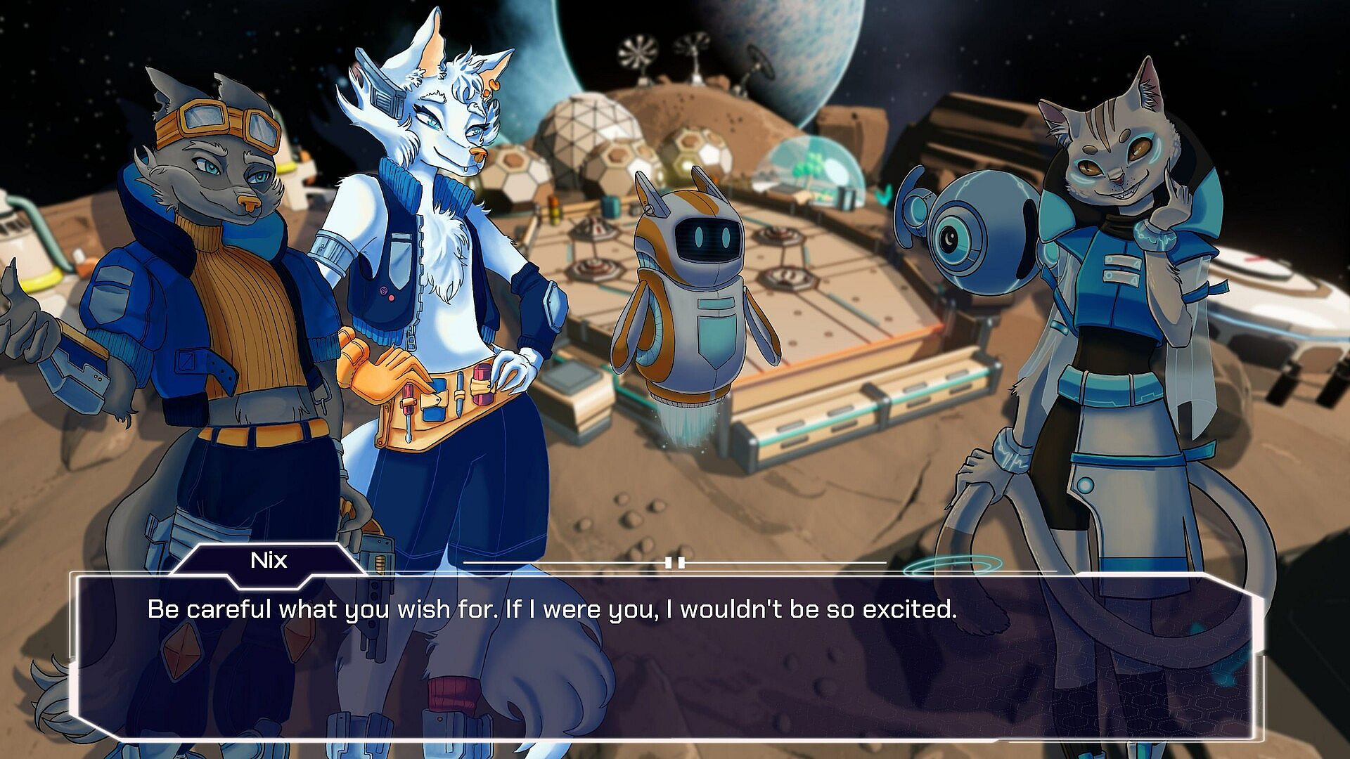 Brick-breaking with a story: Join a duo of heroic wolves and their robot sidekick as they travel through space and face animal antagonists in a light-hearted adventure