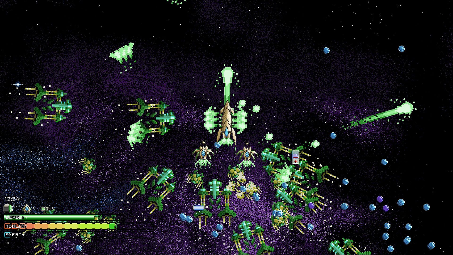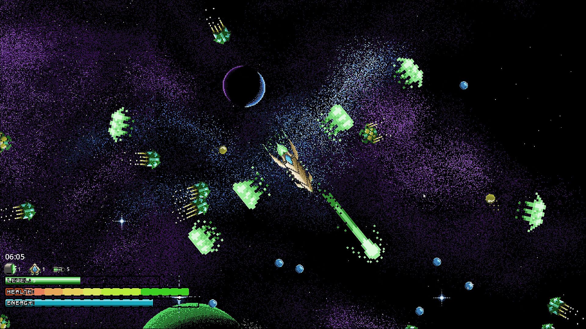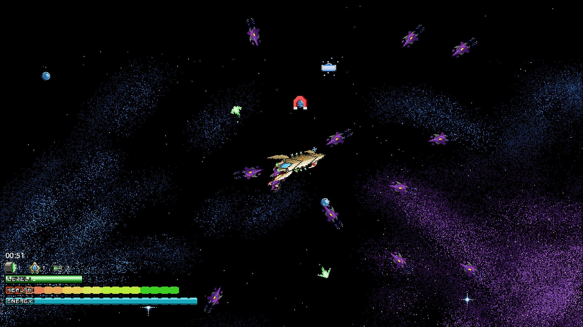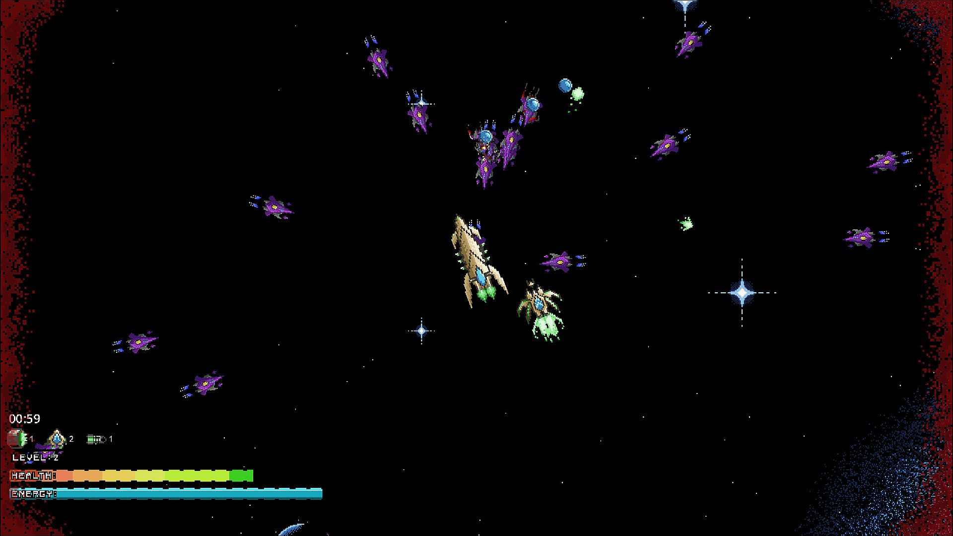As you fend off the enemy ships, you can collect power-ups, level up, and even receive permanent stat upgrades. Fly and survive all the waves and see how far you can make it. You might even come out on top.