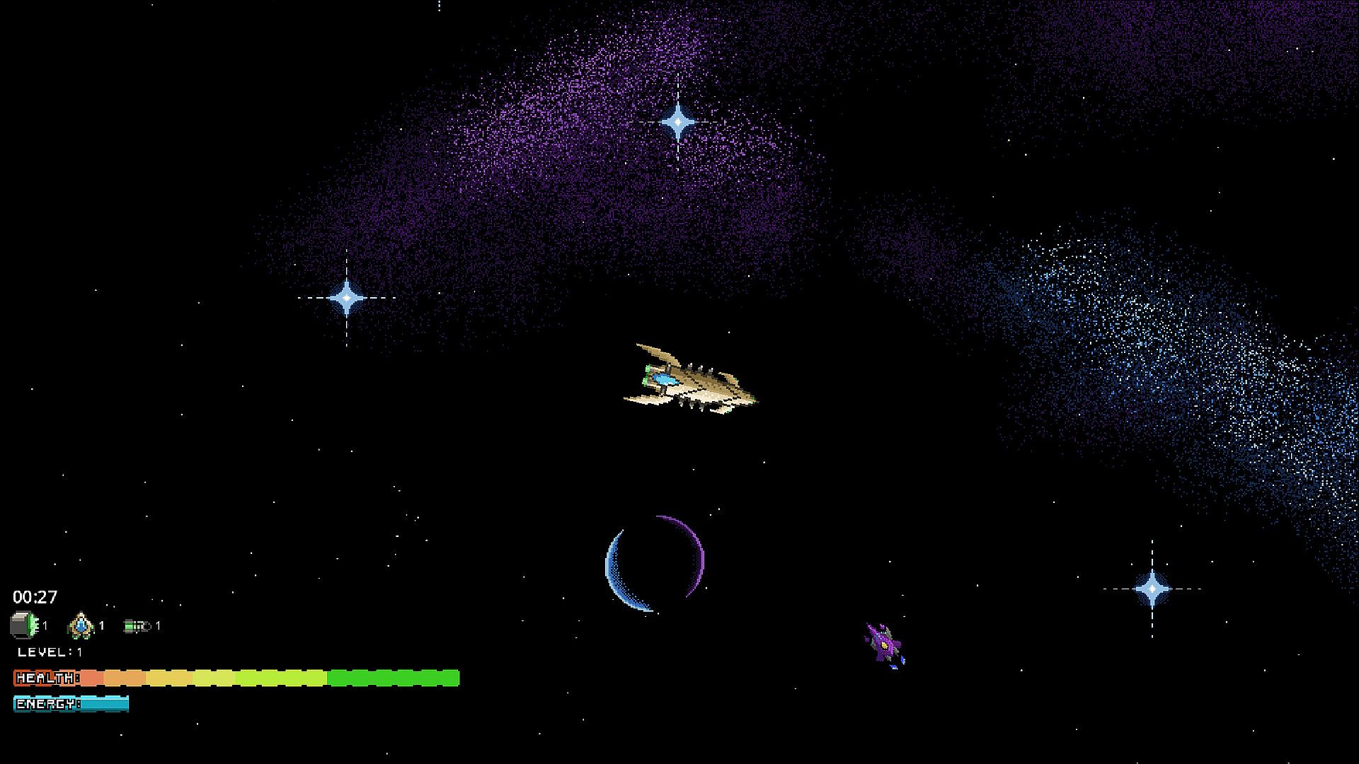 For the pixel art, I used a program called Aseprite. During the process, I looked at references to get a basic understanding of classic pixel art spaceship design and made up my own ideas. I've been doing pixel art for just over 2 years, so seeing what's possible has been quite fun.