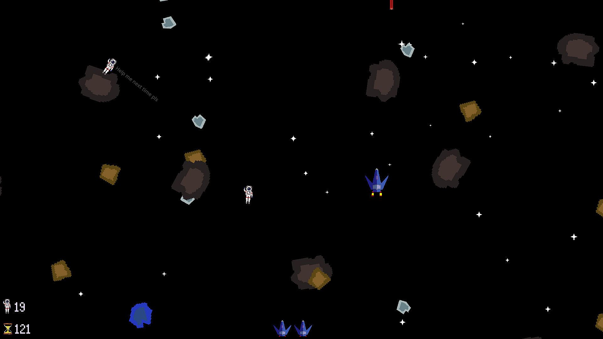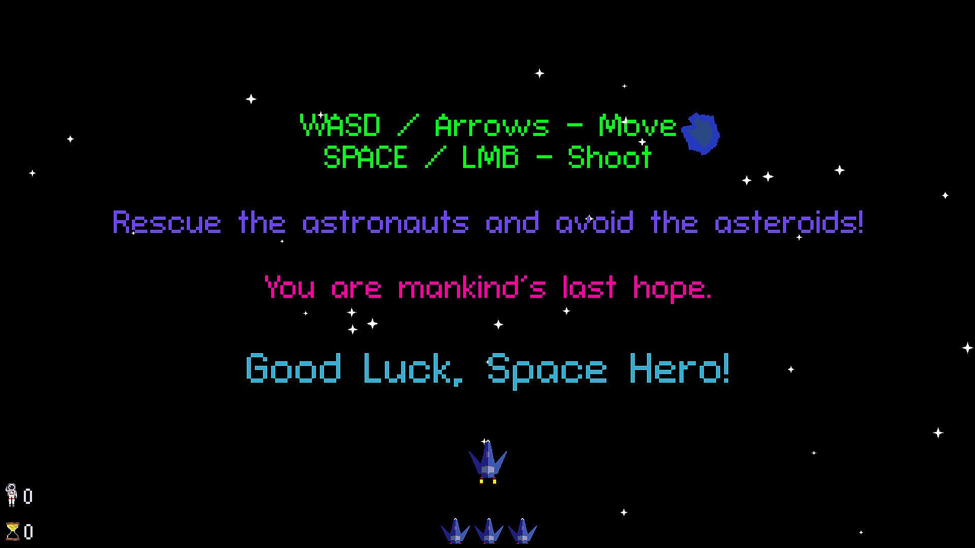 Take control of your spaceship and rescue stranded astronauts while dodging deadly asteroids. You have three lives and an endless space to explore. Good luck on your Space Journey!