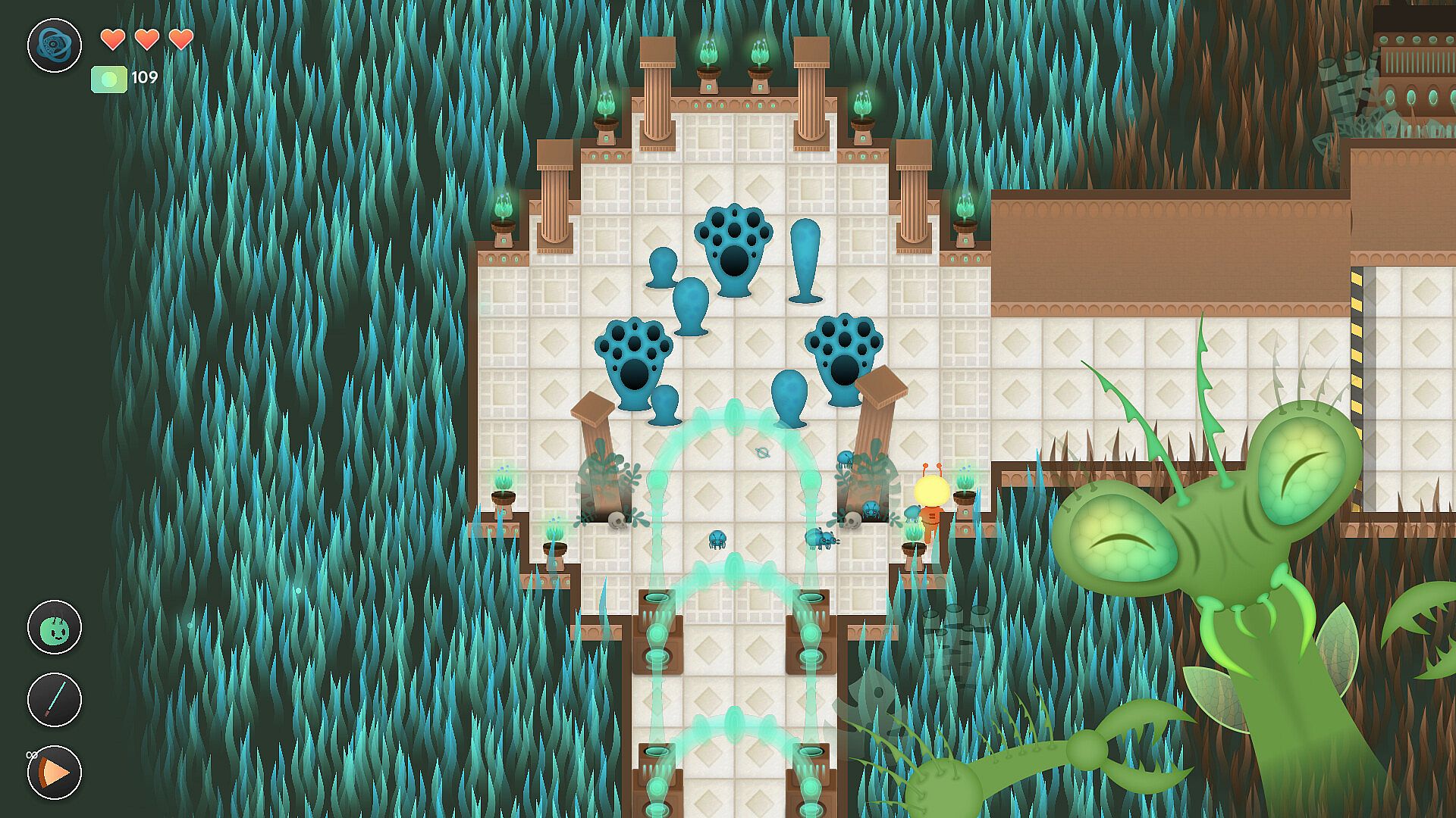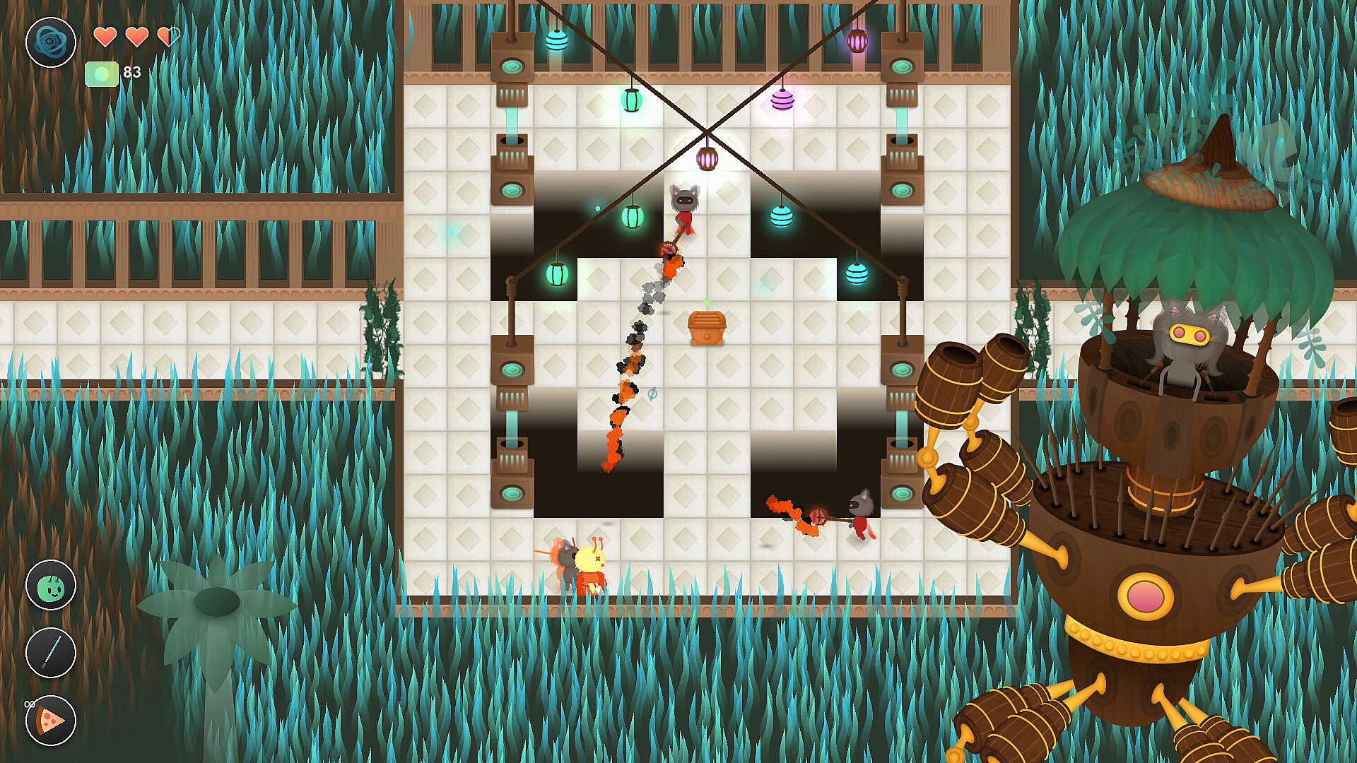 Cosmo's Pizzarama is a dungeon-crawling RPG set in space. Collect pizza toppings, from pepperoni to anchovy, to add to your pizza blaster. Each topping adds a unique modifier to your attack--from fiery pepper blasts to bouncy escargot slices. Pair up to six toppings on a pizza pie to build the ultimate attack.
