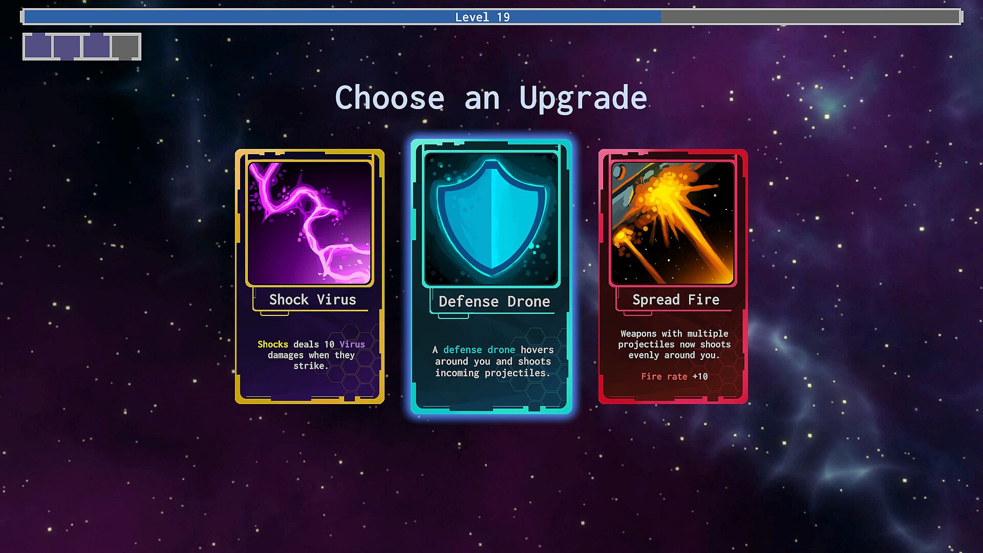 This is the free version of Cosmos Survivors, an action roguelite where you fight waves of spaceships while learning powerful skills to enhance your own spacecraft.