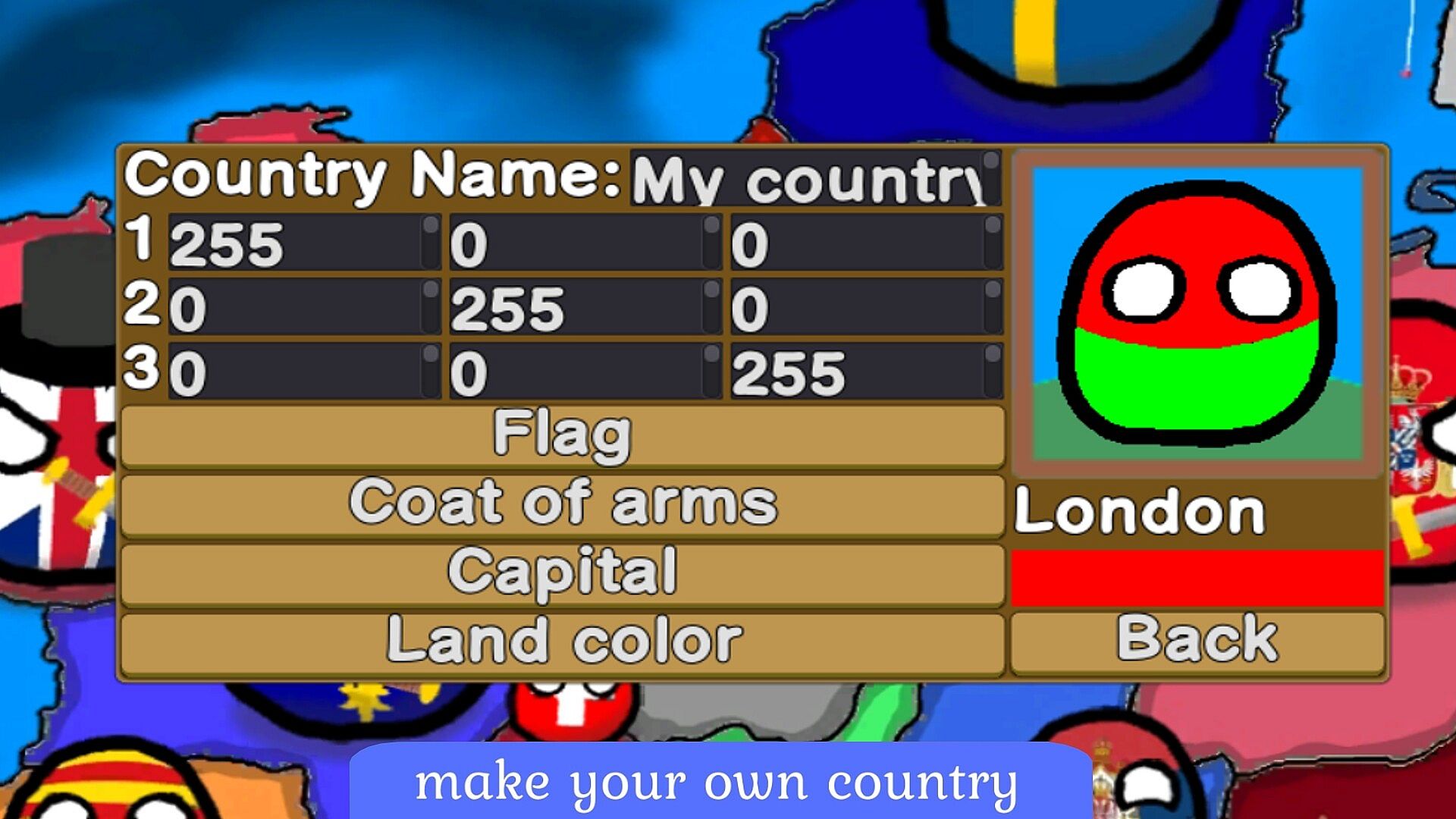 Also in the game there is a system of creating your own country.