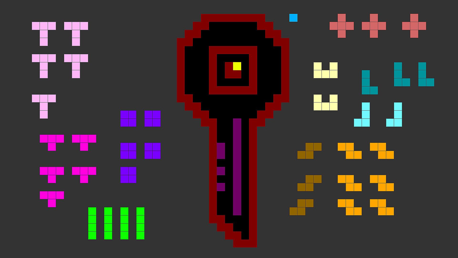 Pick up pieces and rotate them to fit them onto the background. Each level only has a limited number of pieces so you need to be careful. Nearly every level has multiple solutions, so if you don't have to worry about brute forcing for a solution.