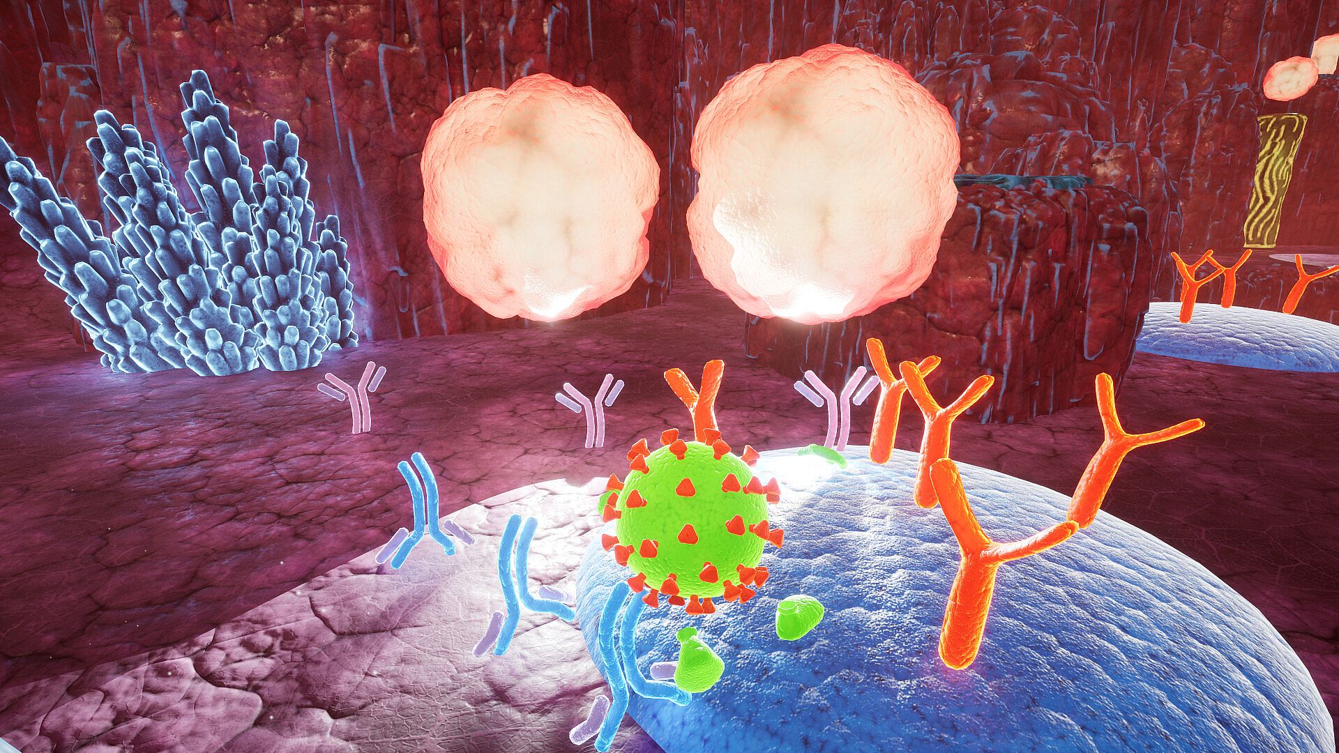 Explore inside the human body as a COVID-virus. A single player, action-adventure, indie game created by a doctor.