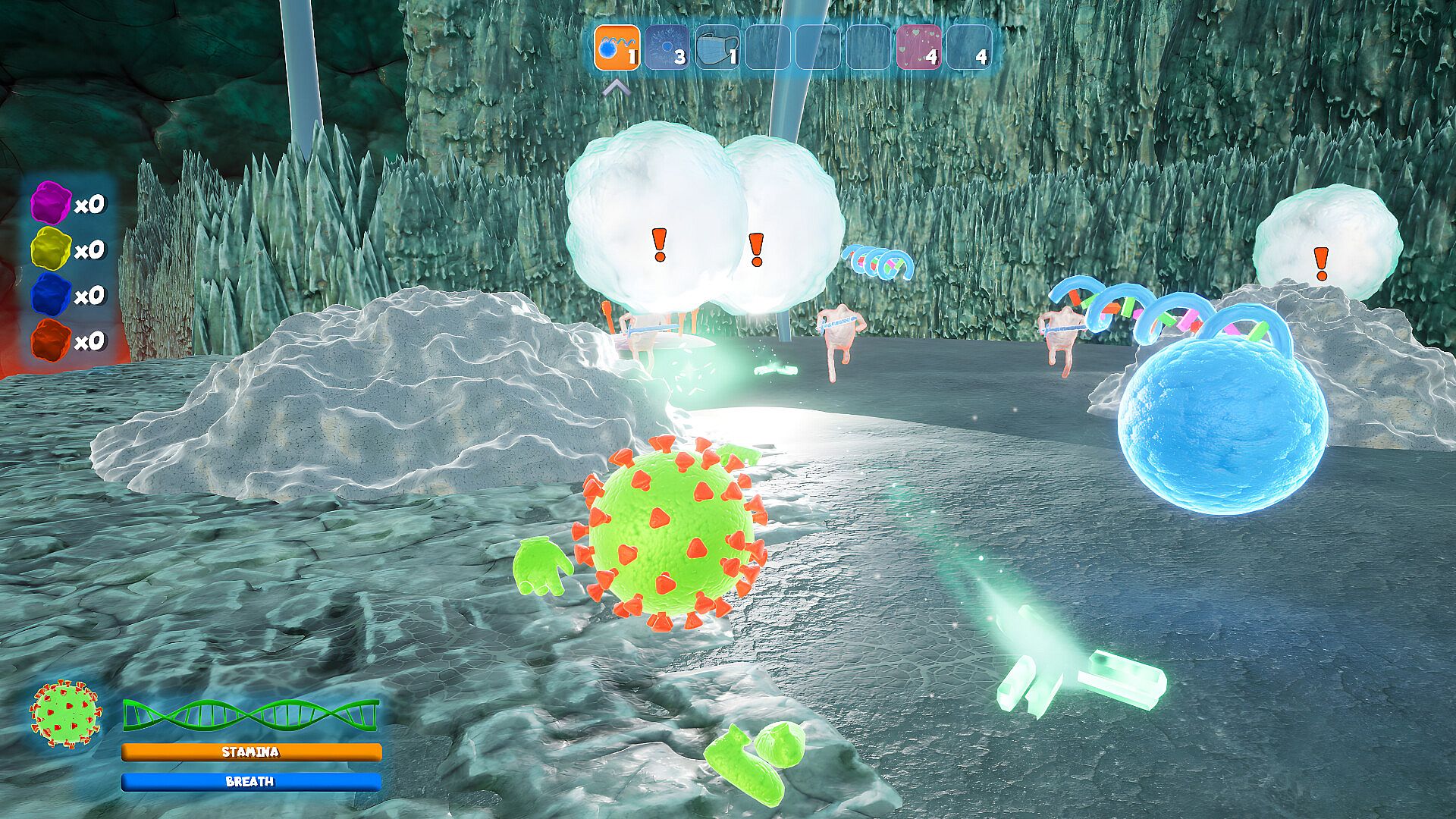 Consumable biology-related items can be crafted from peptide resources collected through the maps by breaking bush-like proteins.