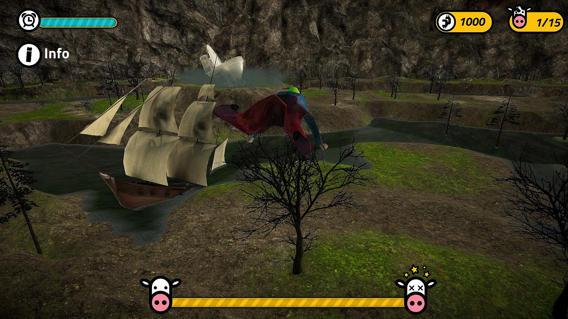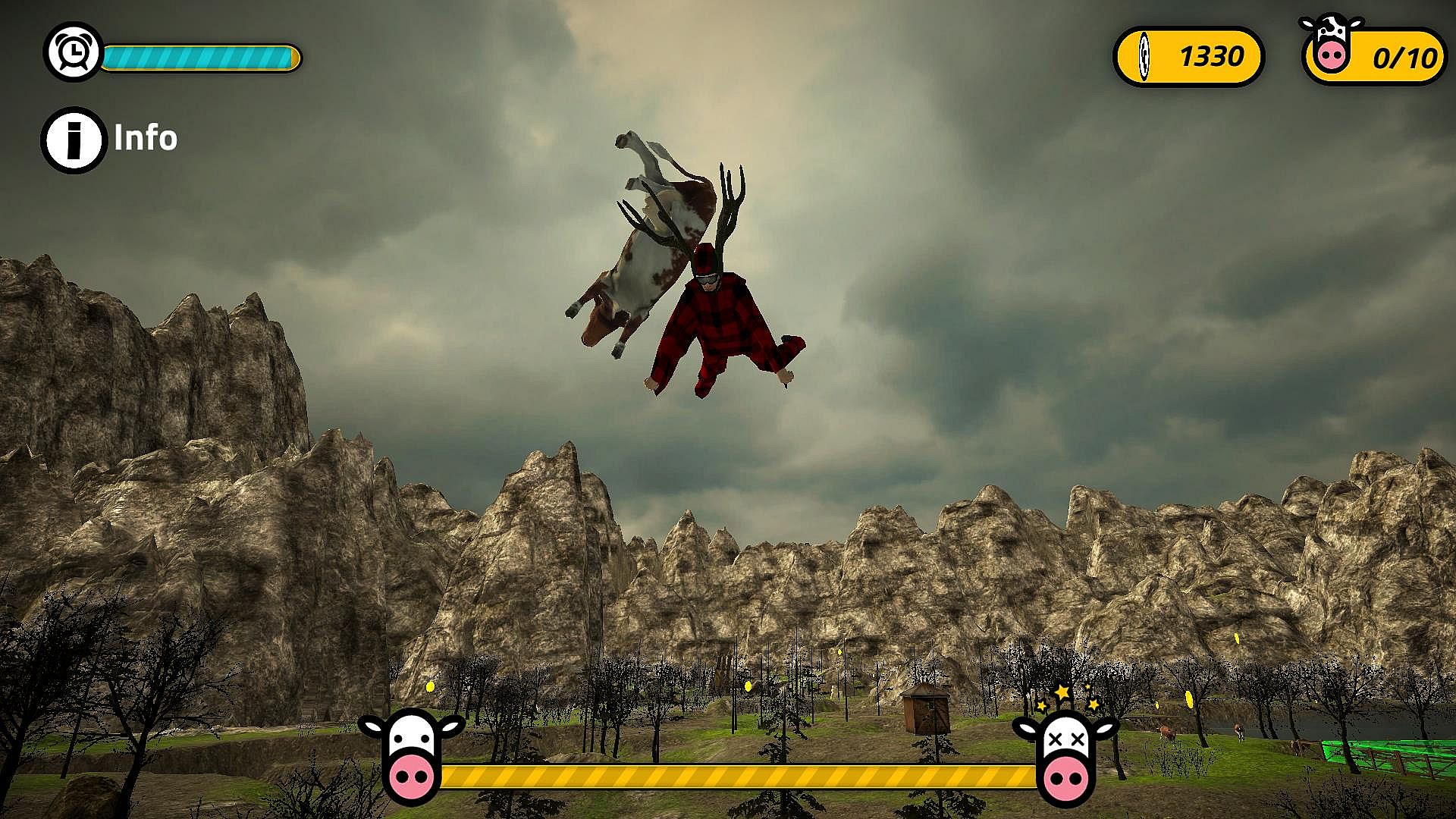 You have to be very careful not to steer your cow in any of the obstacles awaiting you during your flight.