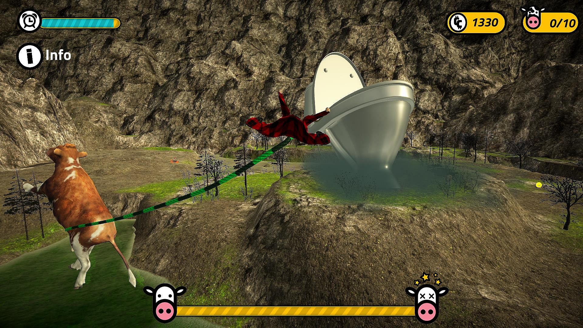 You’re job is to kidnap some amazing cows by attaching a rope to them and then transporting them to your pen.