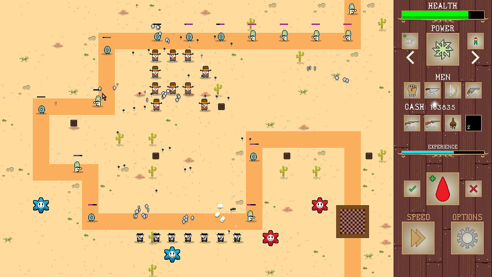 • Levels have obstacles that prevent you from placing a cowboy down. You’ll need to buy or shoot them to remove them out of the way.