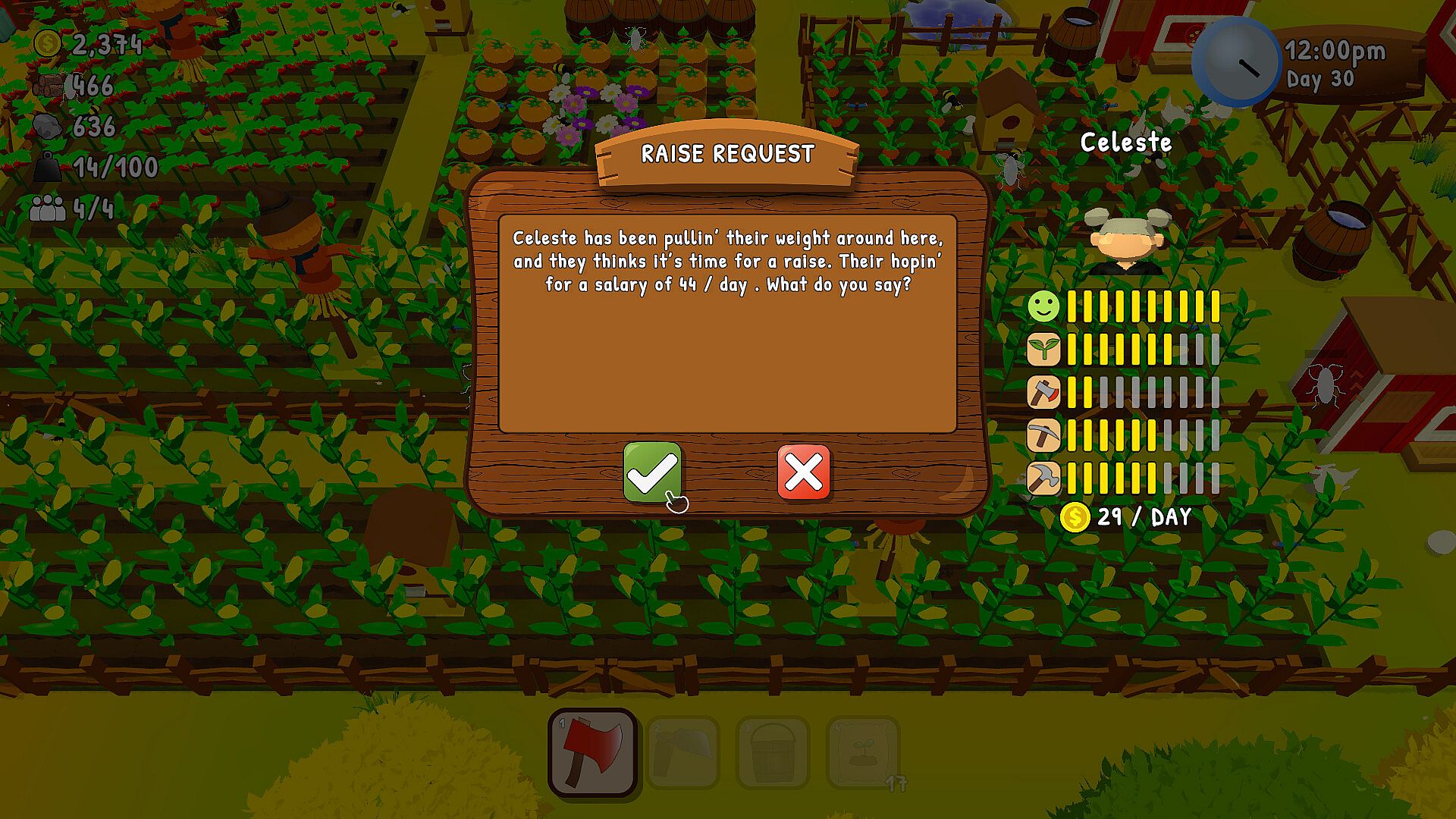 Unlock staffing upgrades to grow and enhance your team of farmhands