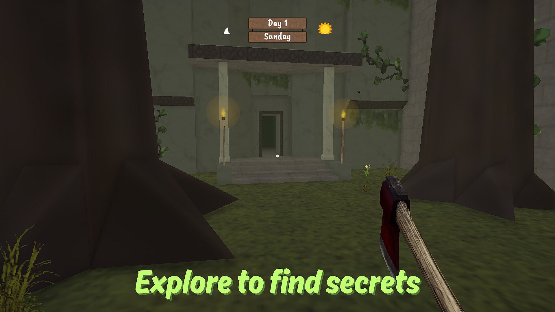 • Build a shelter. A flexible building system allows you to build your dream house and protect yourself from the unknown creatures that roam outside.