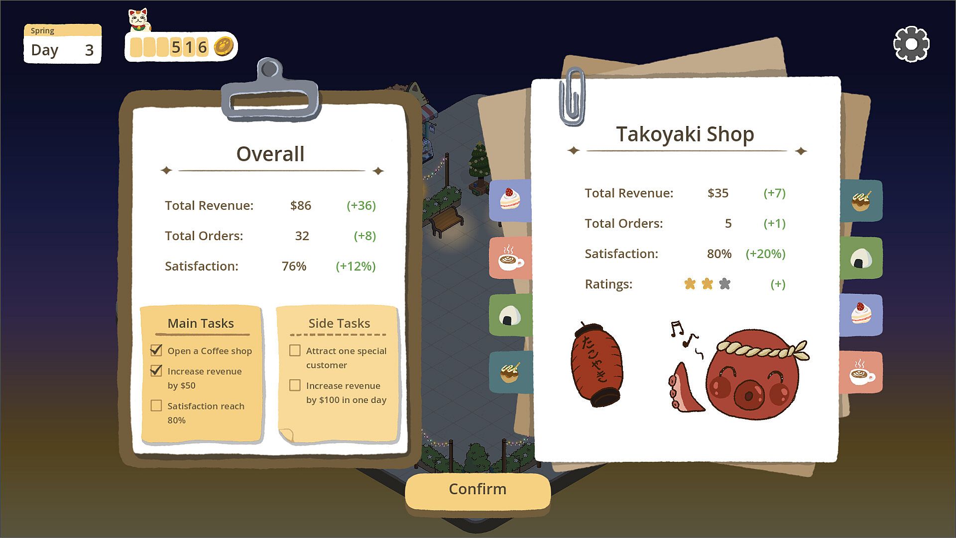 A cute, casual game to manage an outdoor food court. Customize the shops, decorate the plaza, and hold events to attract more customers. Experience the seasons all year round and meet new customers.