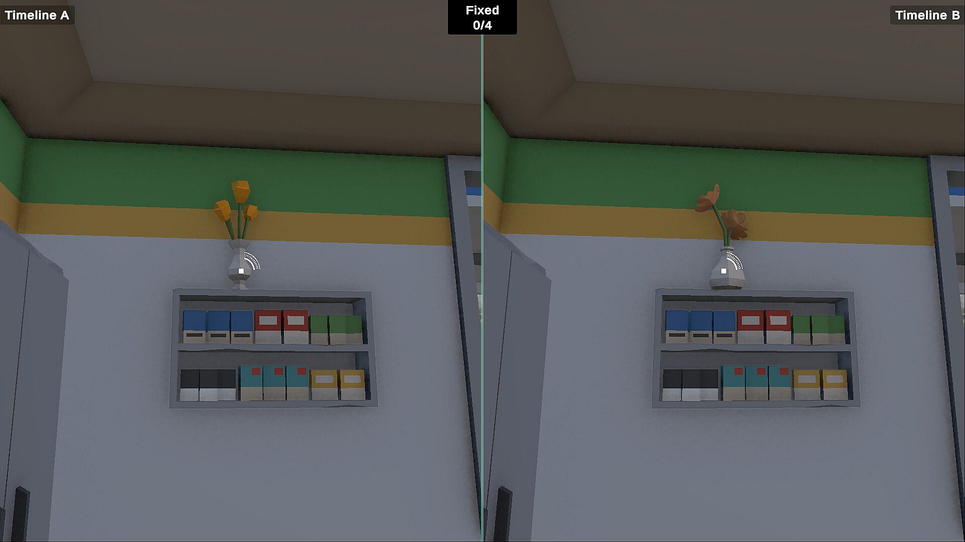 Every level shows two parallel realities side by side in split-screen. You explore in first person through a compact 3D space (often a room or small area) where something doesn’t add up. Your job is to spot the paradoxes: objects or details that don’t match between realities.